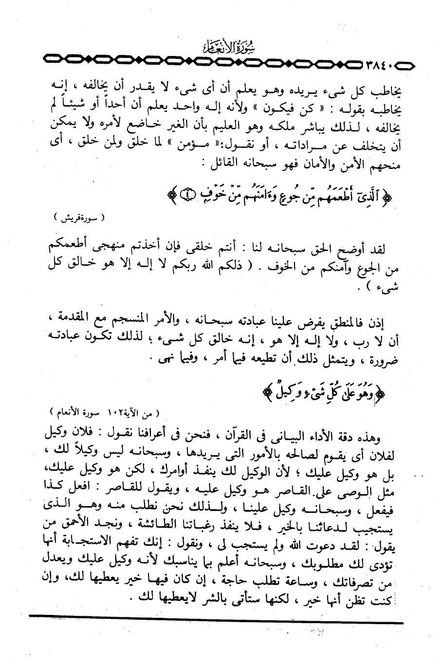 وهذه دقة الأداء البياني في القرآن، فنحن في أعرافنا فلان وكيل لفلان أي يقوم لصالحه بالأمور التي يريدها، وسبحانه ليس وكيلاً لك، بل هو وكيل عنك؛ لأن الوكيل لك ينفذ أوامرك، لكن هو وكيل عليك، مثل الوصي على القاصر هو وكيل عليه، ويقول للقاصر: افعل كذا فيفعل، وسبحانه وكيل علينا، ولذلك نحن نطلب منه وهو الذي يستجيب لدعائنا بالخير، فلا ينفذ رغباتنا الطائشة، ونجد الأحمق من يقول: لقد دعوت الله ولم يستجيب لي، ونقول: إنك تفهم الاستجابة أنها تؤدي لك مطلوبك، وسبحانه أعلم بما يناسبك لأنه وكيل عليك ويعدل من تصرفاتك، وساعة تطلب حاجة، إن كان فيها خير يعطيها لك، وإن كنت تظن أنها خير، لكنها ستأتي بالشر لا يعطيها لك.