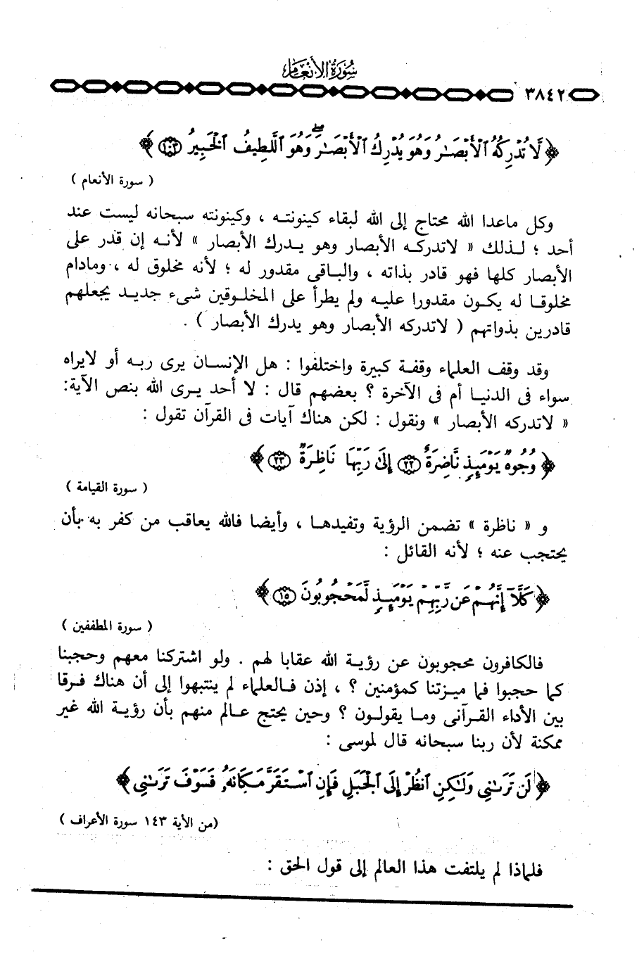 فالكافرون محجوبون عن رؤية الله عقاباً لهم. ولو اشتركنا معهم وحجبنا كما حجبوا فما ميزتنا كمؤمنين؟ ، إذن فالعلماء لم ينتبهوا إلى أن هناك فرقا بين الأداء القرآني وما يقولون؟ وحين يحتج عالم منهم بأن رؤية الله غير ممكنة لأن ربنا سبحانه قال لموسى: {لَن تَرَانِي ولكن انْظُرْ إِلَى الْجَبَلِ فَإِنِ اسْتَقَرَّ مَكَانَهُ فَسَوْفَ تَرَانِي} [الأعراف: 143] .