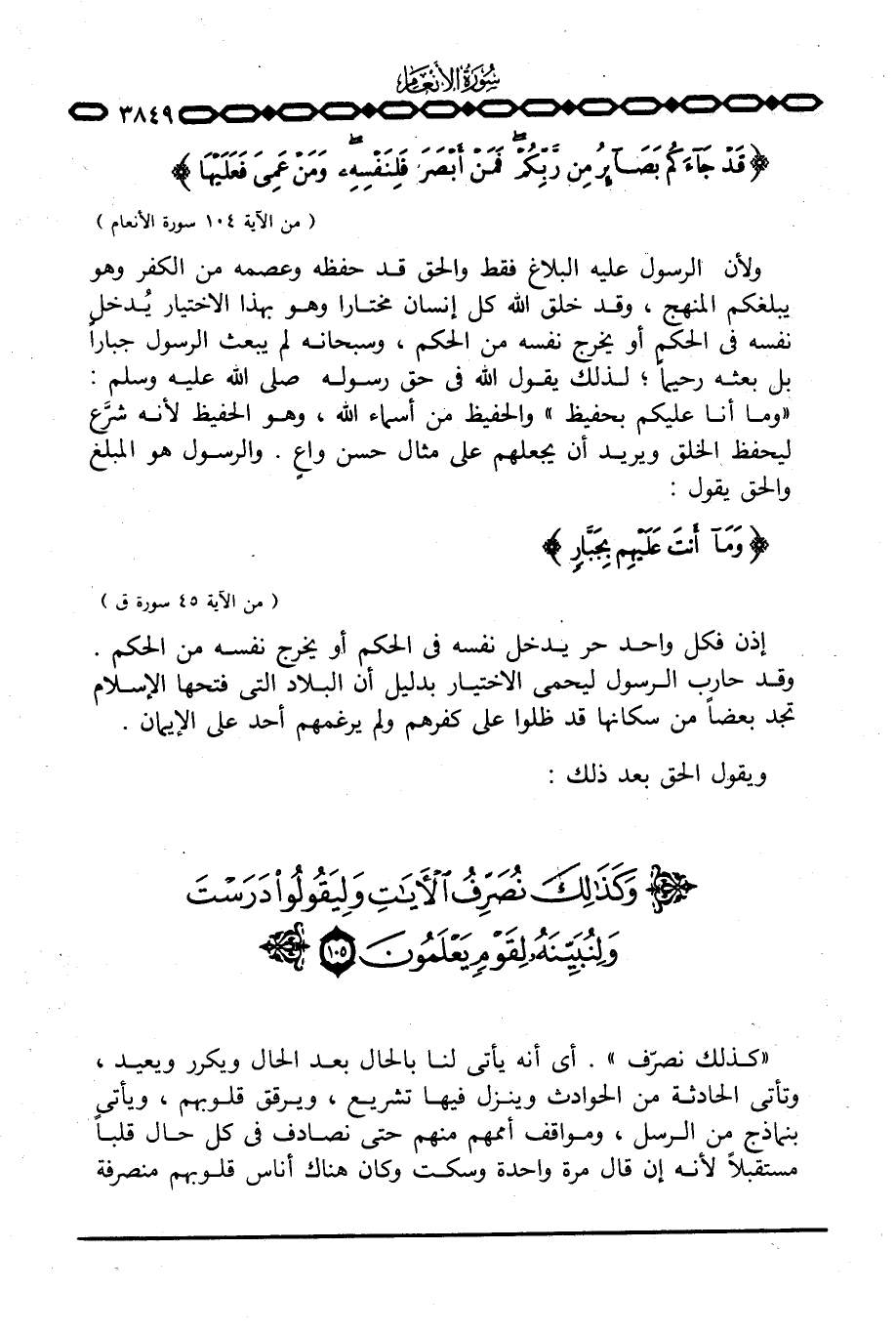 إذن فكل واحد حر يدخل نفسه في الحكم أو يخرج نفسه من الحكم. وقد حارب الرسول ليحمي الاختيار بدليل أن البلاد التي فتحها الإسلام تجد بعضاً من سكانها قد ظلوا على كفرهم ولم يرغمهم أحد على الإيمان.