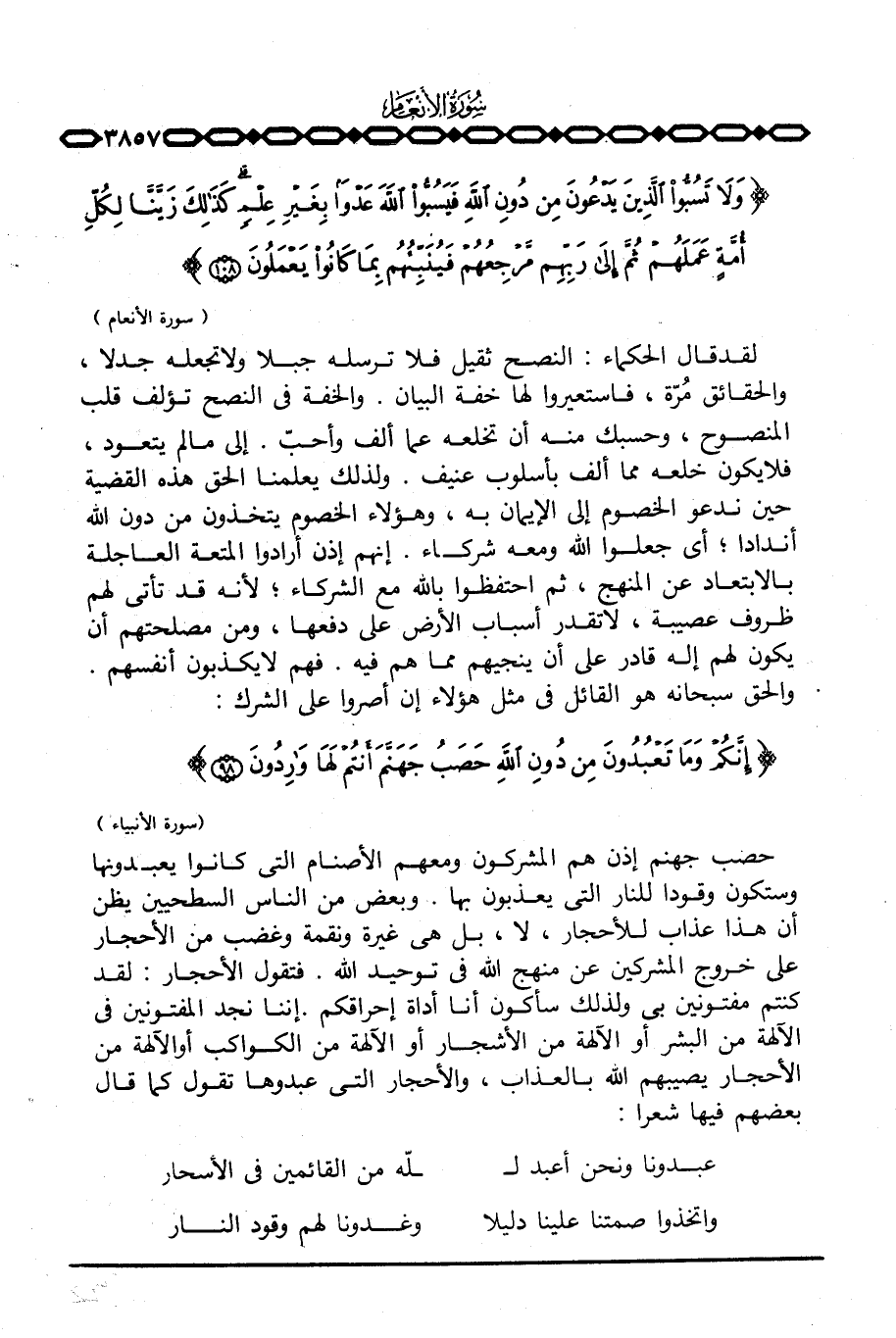 {وَلاَ تَسُبُّواْ الذين يَدْعُونَ مِن دُونِ الله فَيَسُبُّواْ الله عَدْواً بِغَيْرِ عِلْمٍ كَذَلِكَ زَيَّنَّا لِكُلِّ أُمَّةٍ عَمَلَهُمْ ثُمَّ إلى رَبِّهِمْ مَّرْجِعُهُمْ فَيُنَبِّئُهُمْ بِمَا كَانُواْ يَعْمَلُونَ} [الأنعام: 108] .