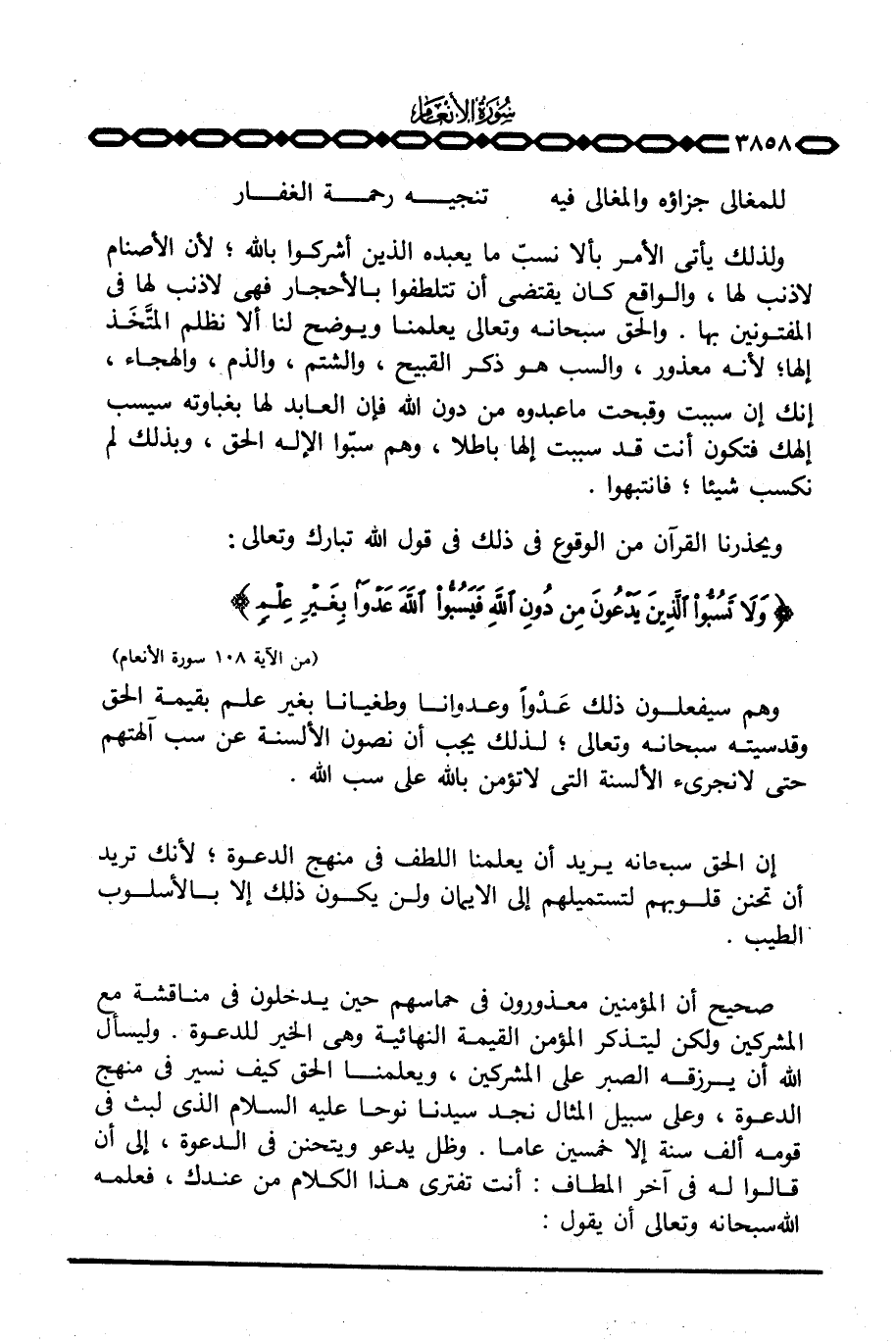ولذلك يأتي الأمر بألا نسبّ ما يعبده الذين أشركوا بالله؛ لأن الأصنام لا ذنب لها، والواقع كان يقتضي أن تتلطفوا بالأحجار فهي لا ذنب لها في المفتونين بها.