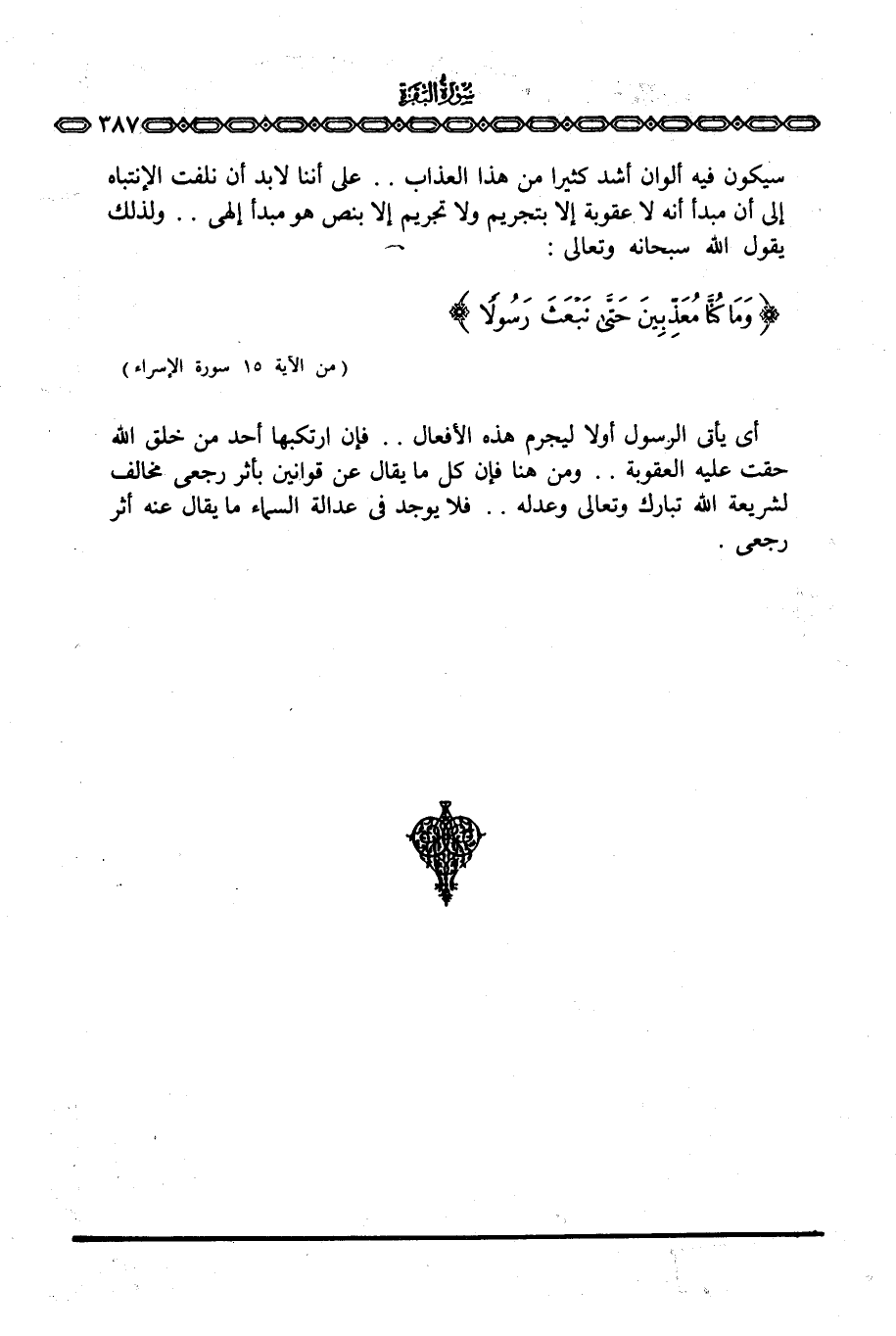 أي يأتي الرسول أولا ليجرم هذه الأفعال. . فإن ارتكبها أحد من خلق الله حقت عليه العقوبة. . ومن هنا فإن كل ما يقال عن قوانين بأثر رجعي مخالف لشريعة الله تبارك وتعالى وعدله. . فلا يوجد في عدالة السماء ما يقال عنه أثر رجعي.