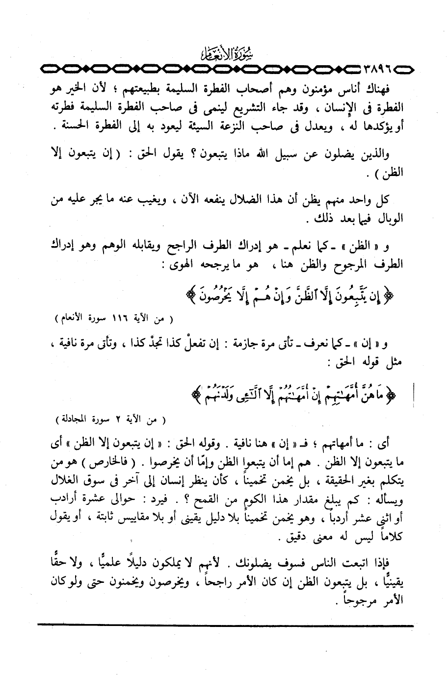أي: ما أماتهم؛ ف «إن» هنا نافية. وقوله الحق: {إِن يَتَّبِعُونَ إِلاَّ الظن} أي ما يتبعون إلا الظن. هم إما أن يتبعوا الظن وإمّا أن يخرصوا. (فالخارص) هو من يتكلم بغير الحقيقة، بل يخمن تخميناً، كأن ينظر إنسان إلى آخر في سوق الغلال ويسأله: كم يبلغ مقدار هذا الكوم من القمح؟ . فيرد: حوالي عشرة أرداب أو اثنى عشر أردباً، وهو يخمن تخميناً بلا دليل يقيني أو بلا مقاييس ثابتة، أو يقول كلاماً ليس له معنى دقيق.