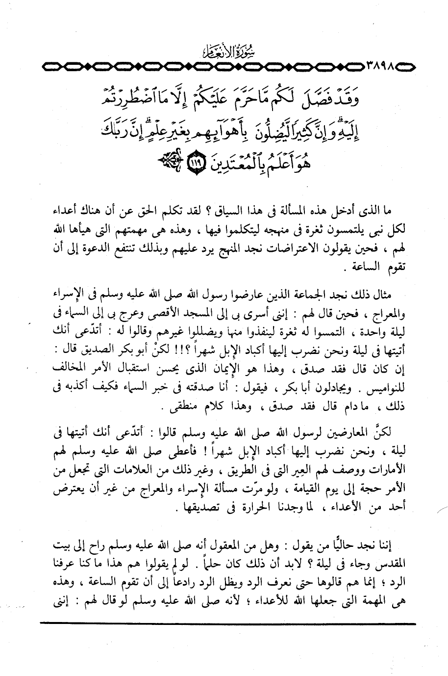 وَمَا لَكُمْ أَلاَّ تَأْكُلُواْ مِمَّا ذُكِرَ اسم الله عَلَيْهِ وَقَدْ فَصَّلَ لَكُمْ مَّا حَرَّمَ عَلَيْكُمْ إِلاَّ مَا اضطررتم إِلَيْهِ وَإِنَّ كَثِيراً لَّيُضِلُّونَ بِأَهْوَائِهِم بِغَيْرِ عِلْمٍ إِنَّ رَبَّكَ هُوَ أَعْلَمُ بالمعتدين}
