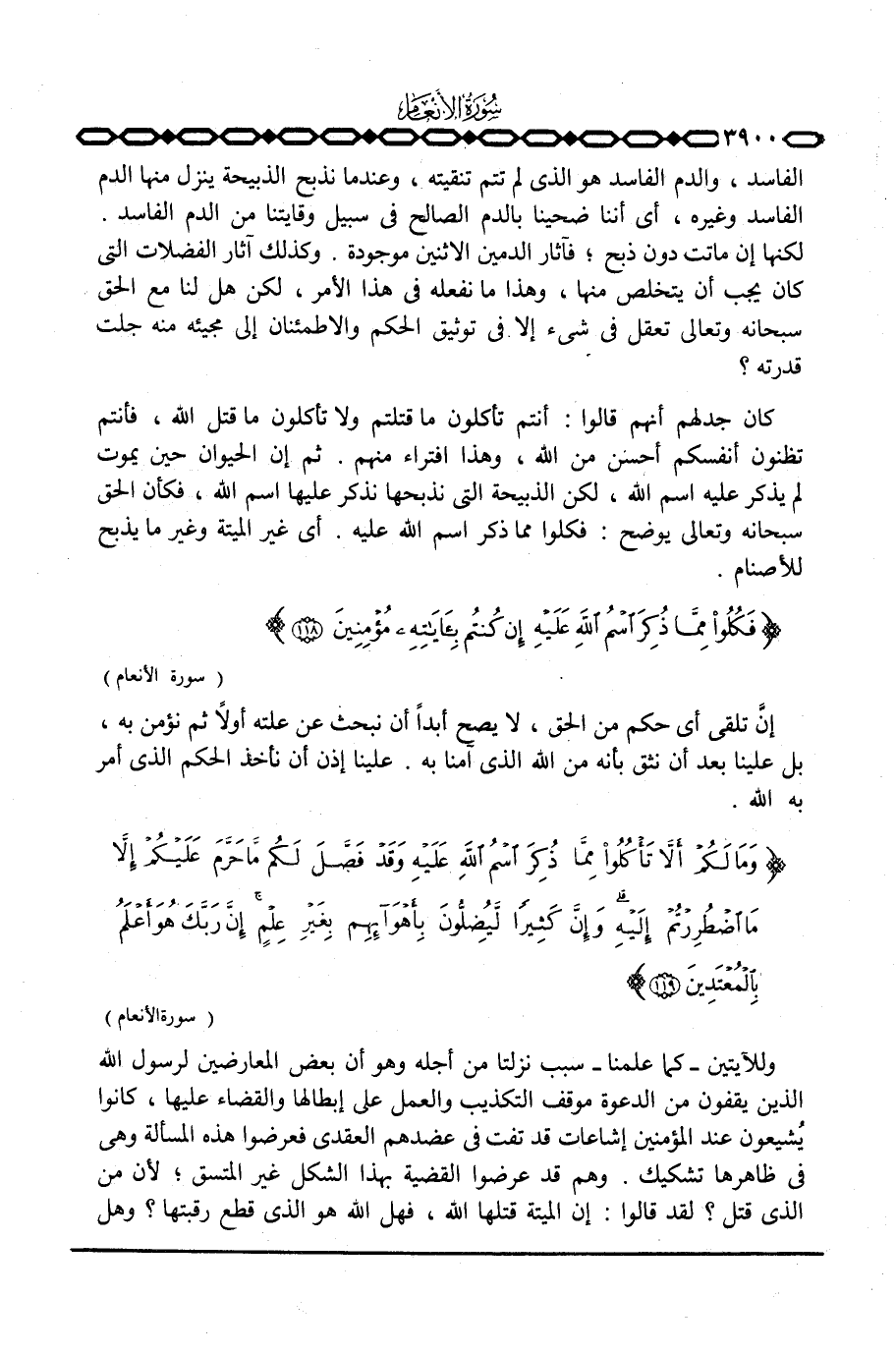 {وَمَا لَكُمْ أَلاَّ تَأْكُلُواْ مِمَّا ذُكِرَ اسم الله عَلَيْهِ وَقَدْ فَصَّلَ لَكُمْ مَّا حَرَّمَ عَلَيْكُمْ إِلاَّ مَا اضطررتم إِلَيْهِ وَإِنَّ كَثِيراً لَّيُضِلُّونَ بِأَهْوَائِهِم بِغَيْرِ عِلْمٍ إِنَّ رَبَّكَ هُوَ أَعْلَمُ بالمعتدين} [الأنعام: 119]