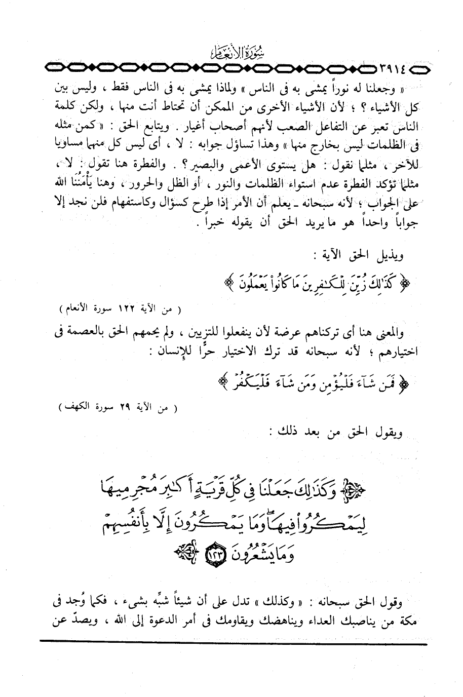 ويذيل الحق الآية: {كَذَلِكَ زُيِّنَ لِلْكَافِرِينَ مَا كَانُواْ يَعْمَلُونَ} [الأنعام: 122]