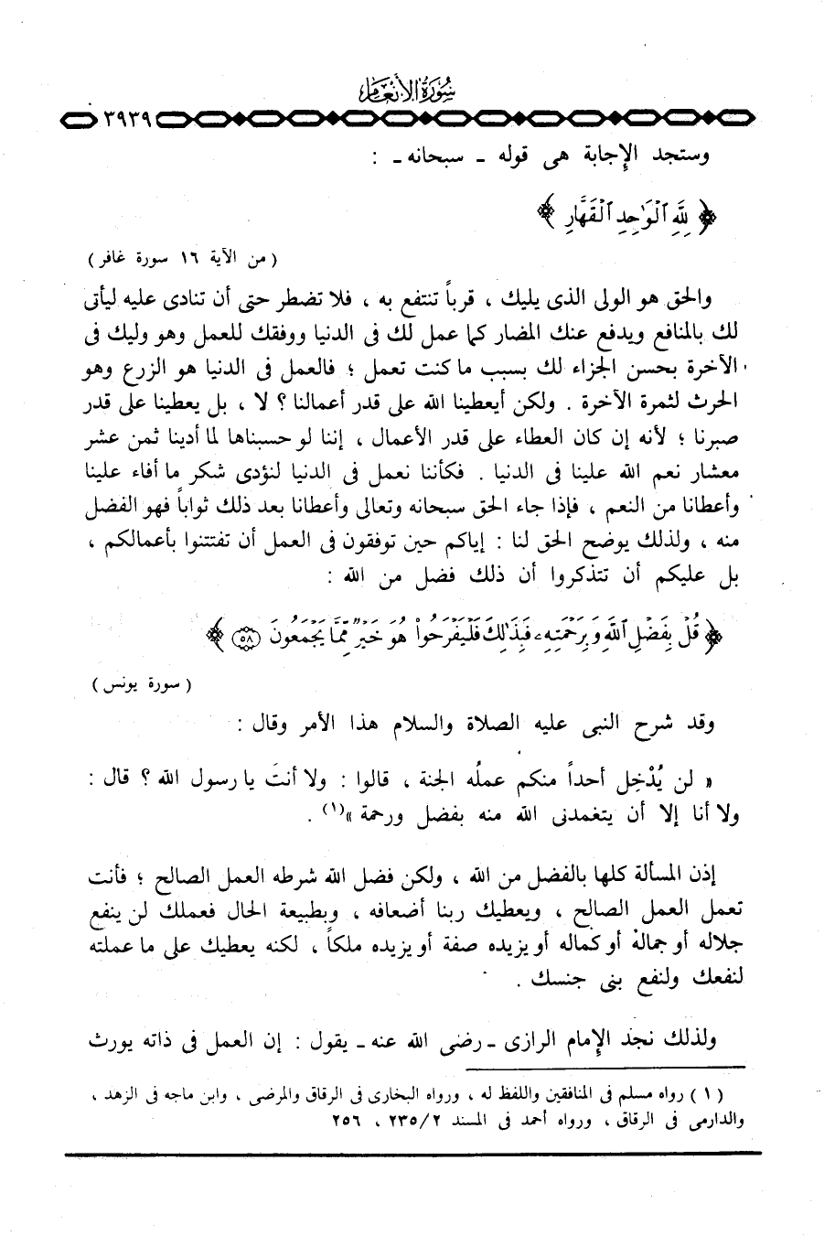 وقد شرح النبي عَلَيْهِ الصَّلَاة وَالسَّلَام ُ هذا الأمر وقال: «لن يُدْخِل أحداً منكم عملُه الجنة، قالوا: ولا أنتَ يا رسول الله؟ قال: ولا أنا إلا أن يتغمدني الله منه بفضل ورحمة.»