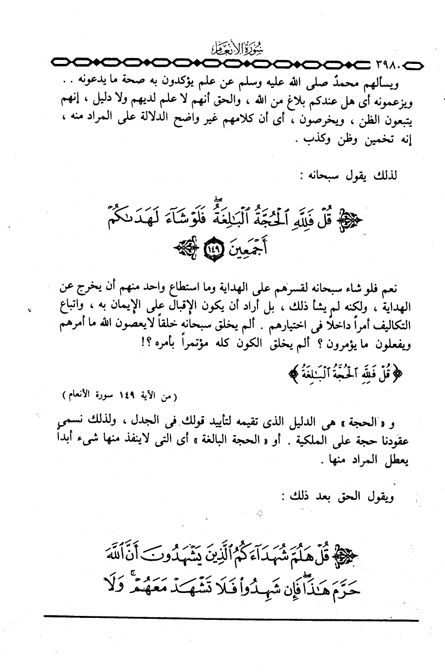 لذلك يقول سبحانه: {قُلْ فَلِلَّهِ الحجة ... }