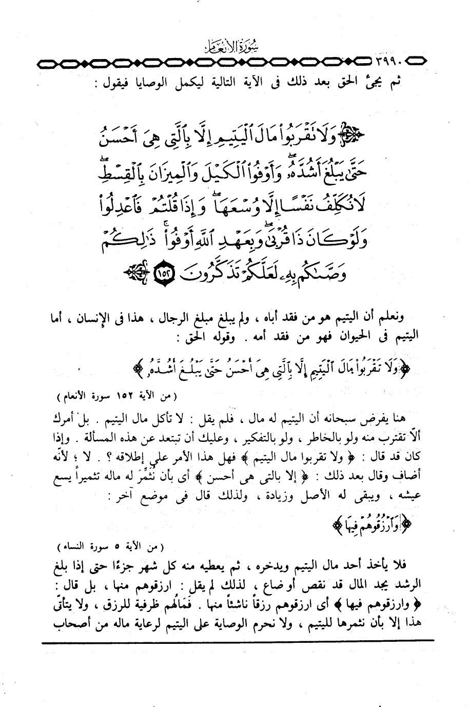ثم يجيء الحق بعد ذلك في الآية التالية ليكمل الوصايا فيقول: {وَلاَ تَقْرَبُواْ مَالَ ... }
