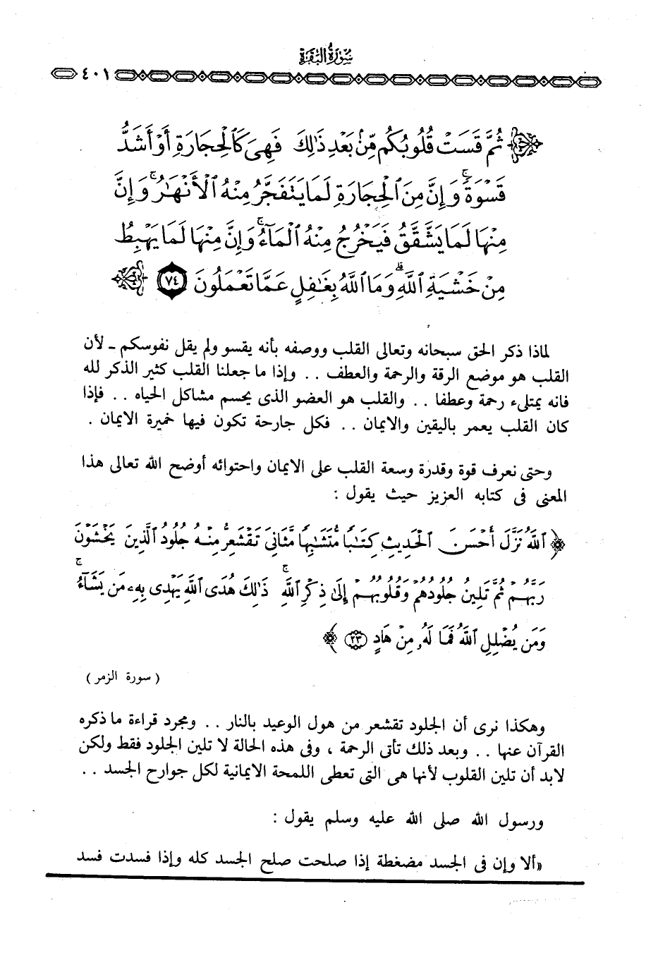لماذا ذكر الحق سبحانه وتعالى القلب ووصفه بأنه يقسو ولم يقل نفوسكم لأن القلب هو موضع الرقة والرحمة والعطف. . وإذا ما جعلنا القلب كثير الذكر لله فإنه يمتلئ رحمة وعطفا. . والقلب هو العضو الذي يحسم مشاكل الحياة. . فإذا كان القلب يعمر باليقين والإيمان. . فكل جارحة تكون فيها خميرة الإيمان.