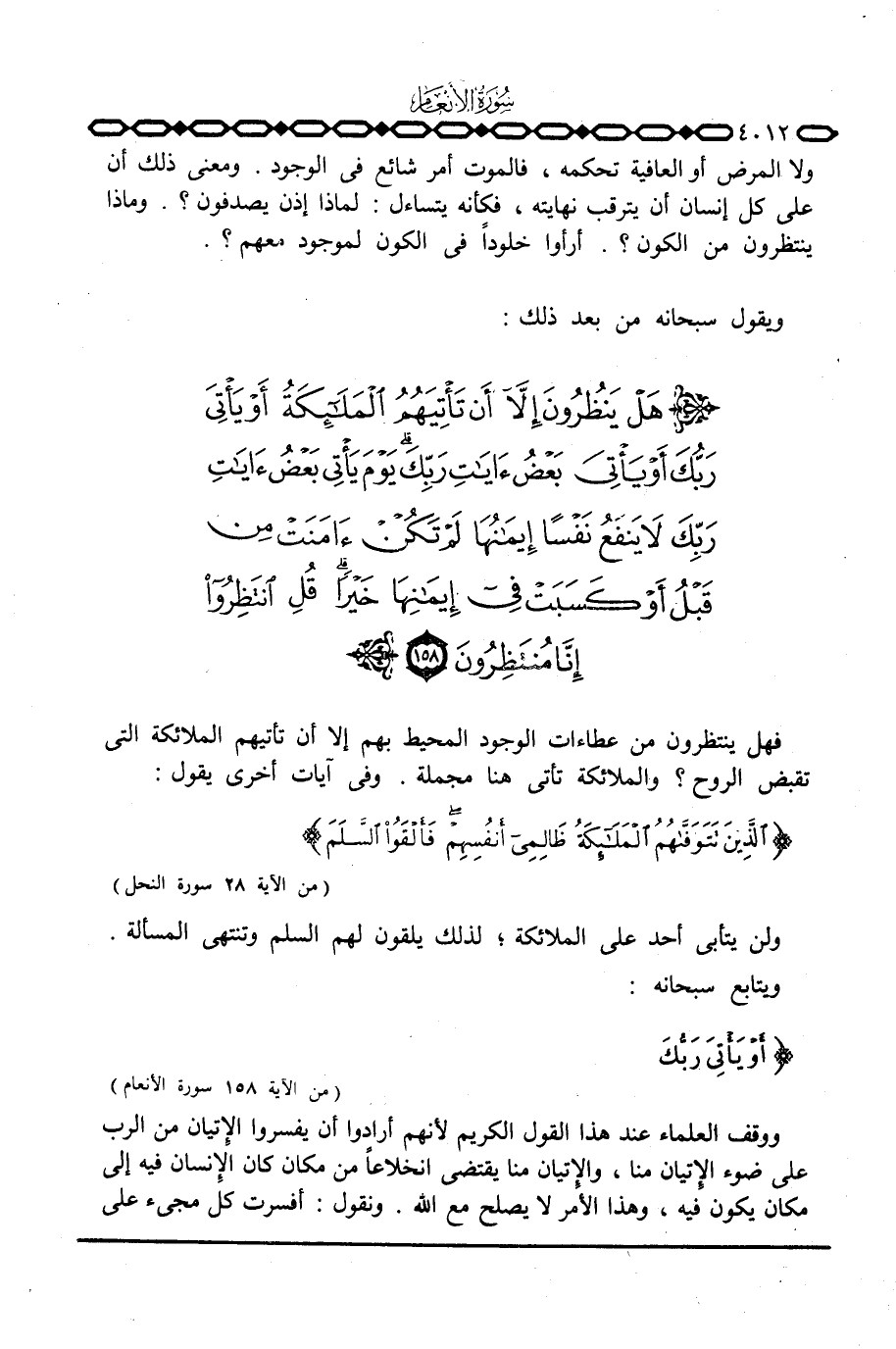 فهل ينتظرون من عطاءات الوجود المحيط بهم إلا أن تأتيهم الملائكة التي تقبض الروح؟ والملائكة تأتي هنا مجملة. وفي آيات أخرى يقول: {الذين تَتَوَفَّاهُمُ الملائكة ظَالِمِي أَنْفُسِهِمْ فَأَلْقَوُاْ السلم ... } [النحل: 28]