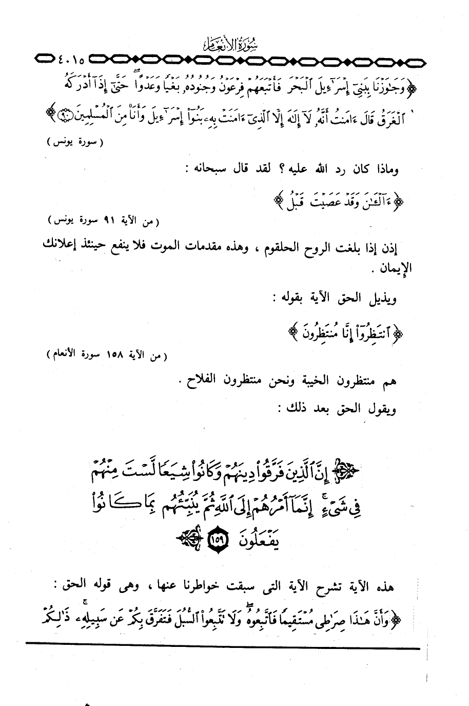 {وَجَاوَزْنَا ببني إِسْرَائِيلَ البحر فَأَتْبَعَهُمْ فِرْعَوْنُ وَجُنُودُهُ بَغْياً وَعَدْواً حتى إِذَآ أَدْرَكَهُ الغرق قَالَ آمَنتُ أَنَّهُ لا إله إِلاَّ الذي آمَنَتْ بِهِ بنوا إِسْرَائِيلَ وَأَنَاْ مِنَ المسلمين} [يونس: 90]
