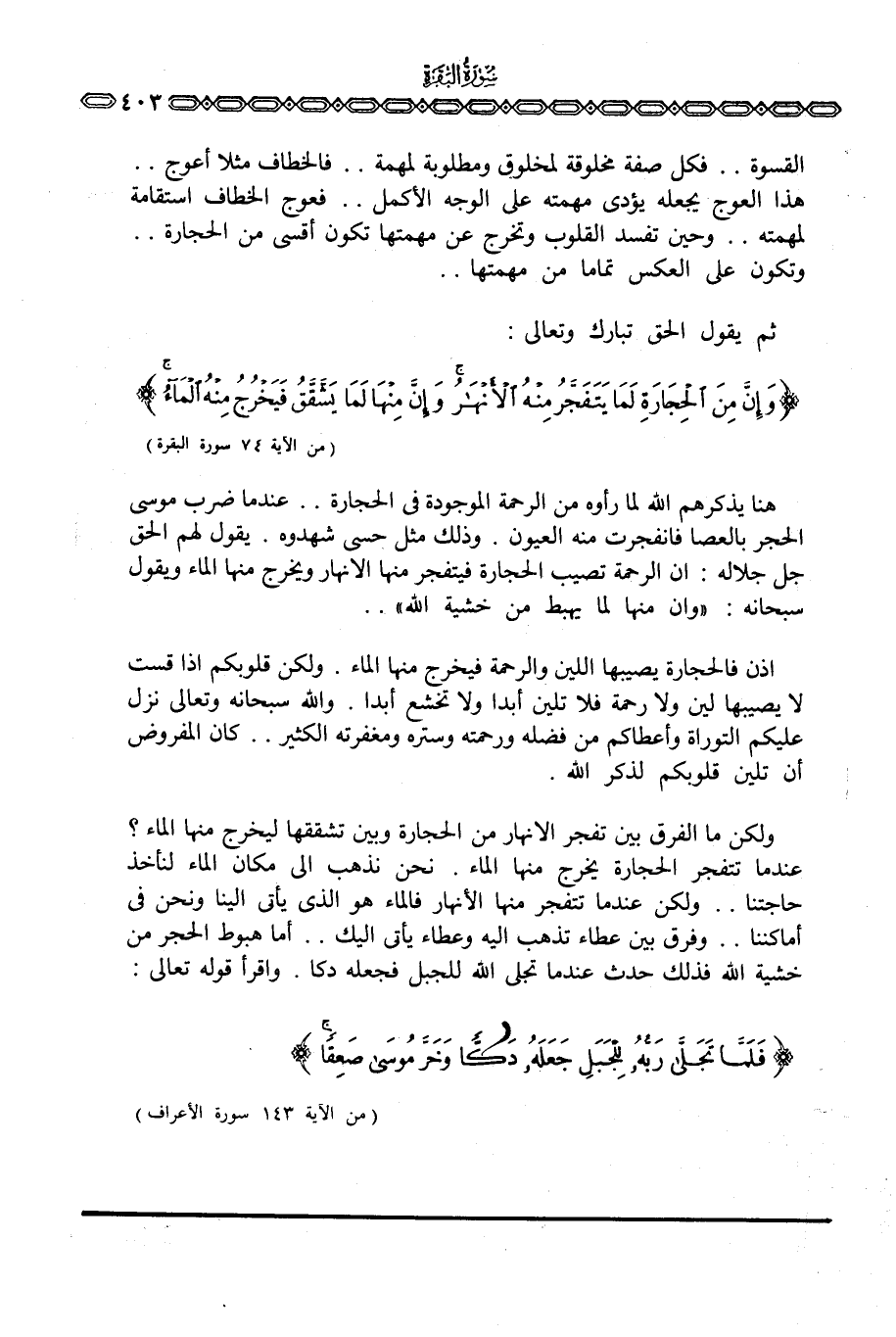 إذن فالحجارة يصيبها اللين والرحمة فيخرج منها الماء. ولكن قلوبكم إذا قست لا يصيبها لين ولا رحمة فلا تلين أبدا ولا تخشع أبدا. والله سبحانه وتعالى نزل عليكم التوراة وأعطاكم من فضله ورحمته وستره ومغفرته الكثير. . كان المفروض أن تلين قلوبكم لذكر الله.