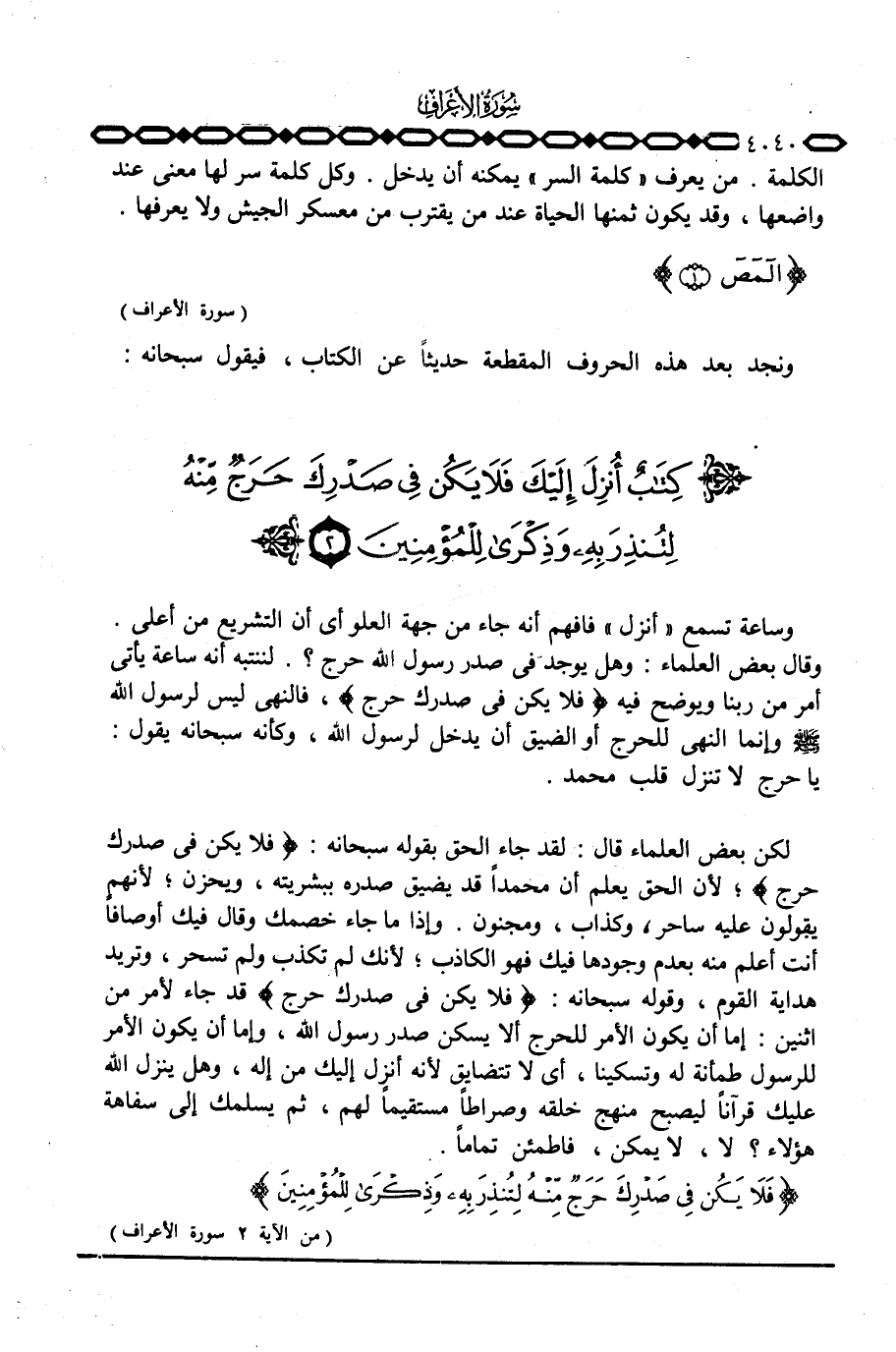 ونجد بعد هذه الحروف المقطعة حديثاً عن الكتاب، فيقول سبحانه: {كِتَابٌ أُنزِلَ إِلَيْكَ ... }