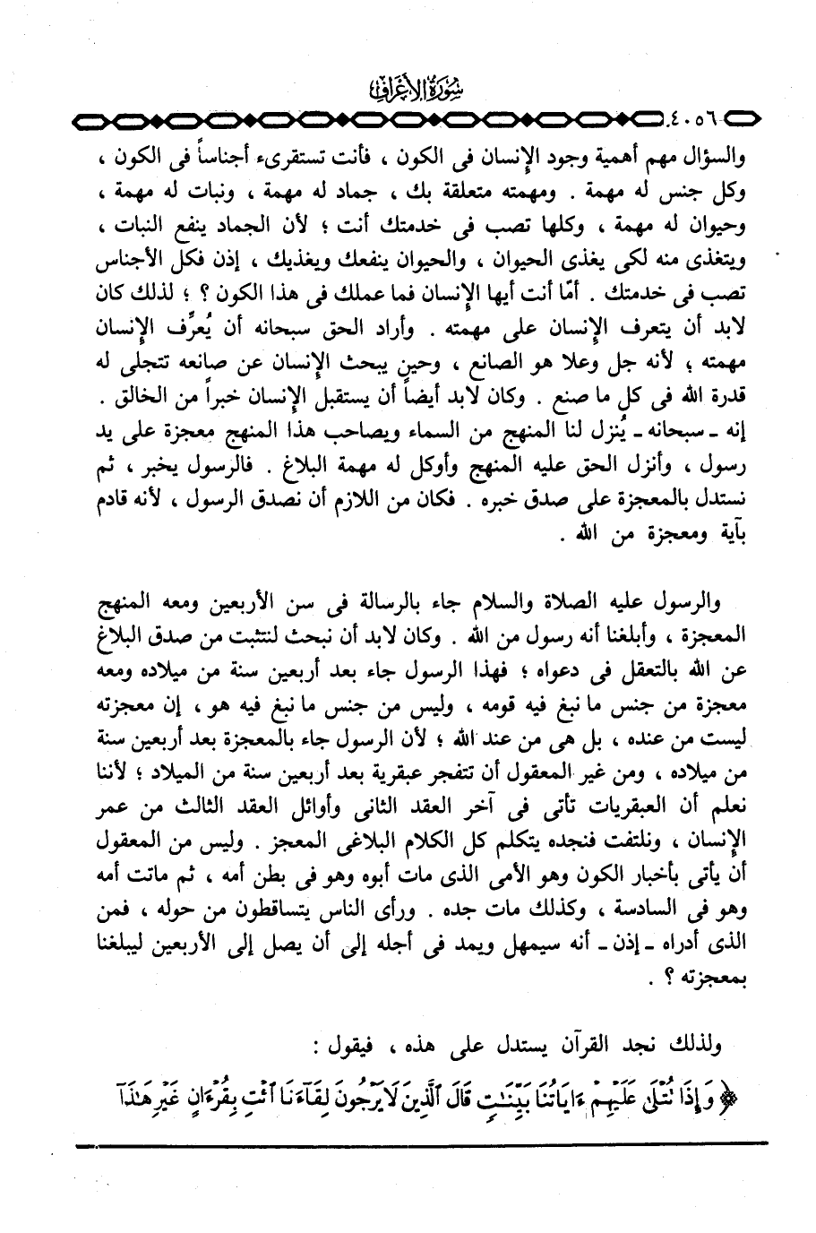 ولذلك نجد القرآن يستدل على هذه، فيقول: {وَإِذَا تتلى عَلَيْهِمْ آيَاتُنَا بَيِّنَاتٍ قَالَ الذين لاَ يَرْجُونَ لِقَآءَنَا ائت بِقُرْآنٍ غَيْرِ هاذآ