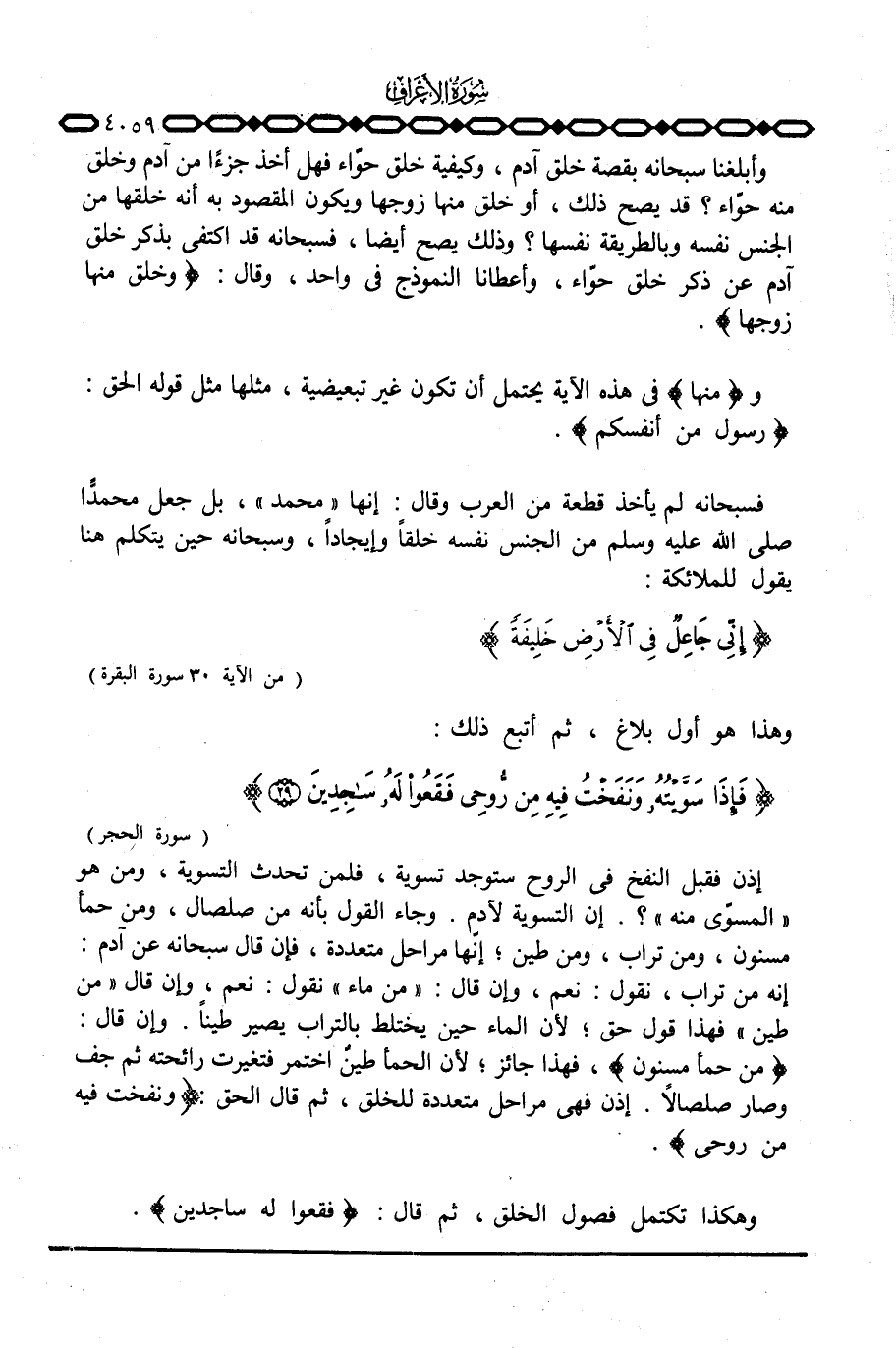 وأبلغنا سبحانه بقصة خلق آدم، وكيفية خلق حوّاء فهل أخذ جزءًا من آدم وخلق منه حوّاء؟ قد يصح ذلك، أو خلق منها زوجها ويكون المقصود به أنه خلقها من الجنس نفسه وبالطريقة نفسها؟ وذلك يصح أيضا، فسبحانه قد اكتفى بذكر خلق آدم عن ذكر خلق حوّاء، وأعطانا النموذج في واحد، وقال: {وَخَلَقَ مِنْهَا زَوْجَهَا} .