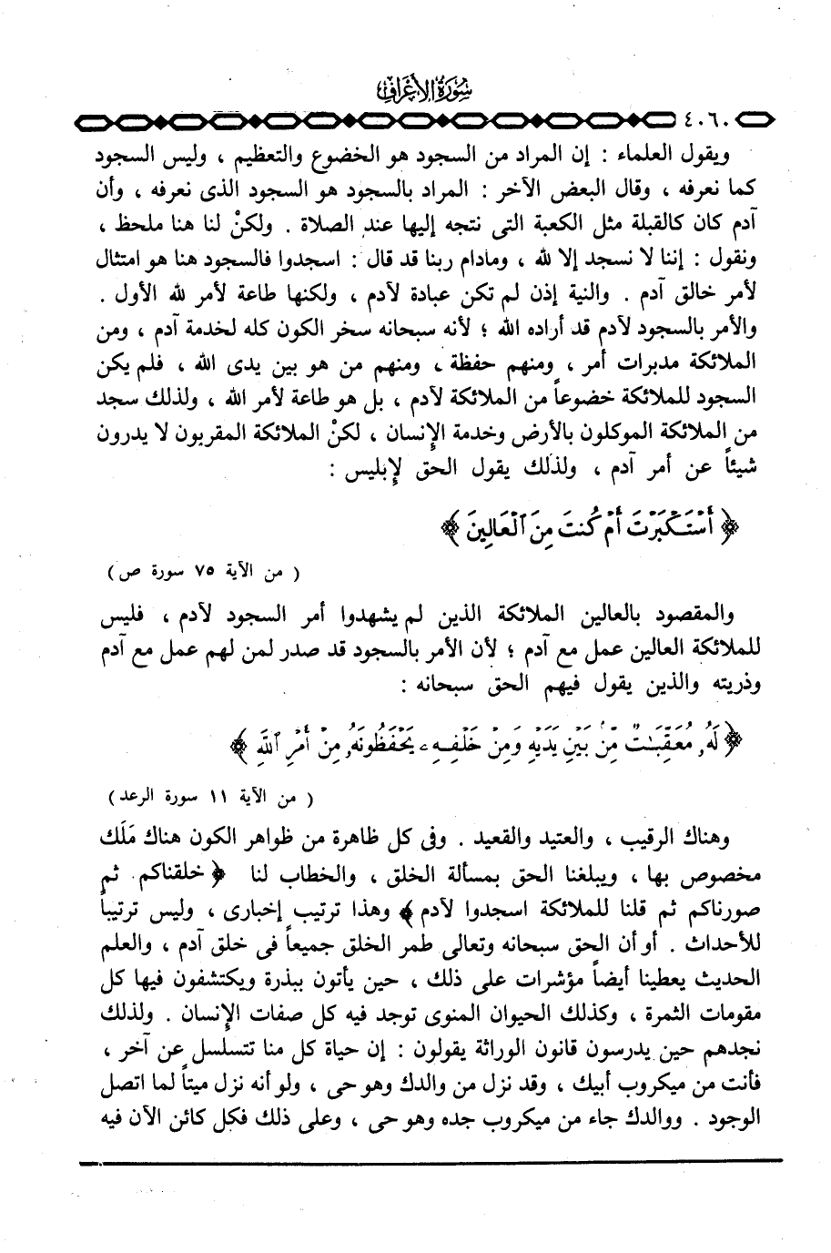 ويقول العلماء: إن المراد من السجود هو الخضوع والتعظيم، وليس السجود كما نعرفه، وقال البعض الآخر: المراد بالسجود هو السجود الذي نعرفه، وأن آدم كان كالقبلة مثل الكعبة التي نتجه إليها عند الصلاة. ولكنْ لنا هنا ملاحظة، ونقول: إننا لا نسجد إلا الله، ومادام ربنا قد قال: اسجدوا فالسجود هنا هو امتثال لأمر خالق آدم. والنية إذن لم تكن عبادة لآدم، ولكنها طاعة لأمر الله الأول. والأمر بالسجود لآدم قد أراده الله؛ لأنه سبحانه سخر الكون كله لخدمة آدم، ومن الملائكة مدبرات أمر، ومنهم حفظة، ومنهم من هو بين يدي الله، فلم يكن السجود للملائكة خضوعاً من الملائكة لآدم، بل هو طاعة لأمر الله، ولذلك سجد من الملائكة الموكلون بالأرض وخدمة الإنسان، لكنْ الملائكة المقربون لا يدرون شيئاُ عن أمر آدم، ولذلك يقول الحق لإِبليس: { ... أَسْتَكْبَرْتَ أَمْ كُنتَ مِنَ العالين} [ص: 75}