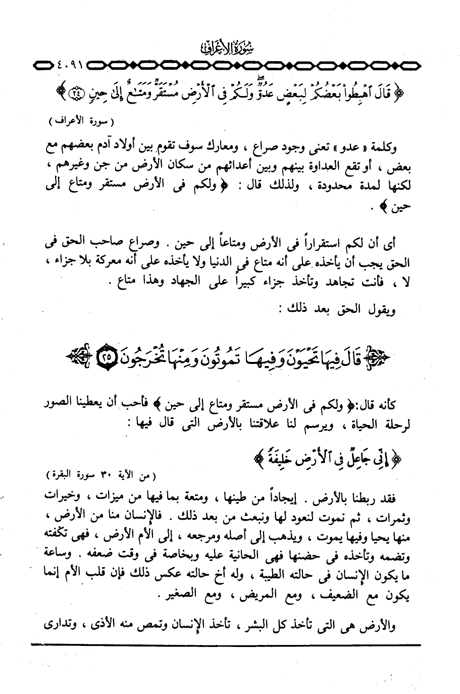 كأنه قال: {وَلَكُمْ فِي الأرض مُسْتَقَرٌّ وَمَتَاعٌ إلى حِينٍ} فأحب أن يعطينا الصور لرحلة الحياة، ويرسم لنا علاقتنا بالأرض التي قال فيها: {إِنِّي جَاعِلٌ فِي الأرض خَلِيفَةً ... } [البقرة: 30]