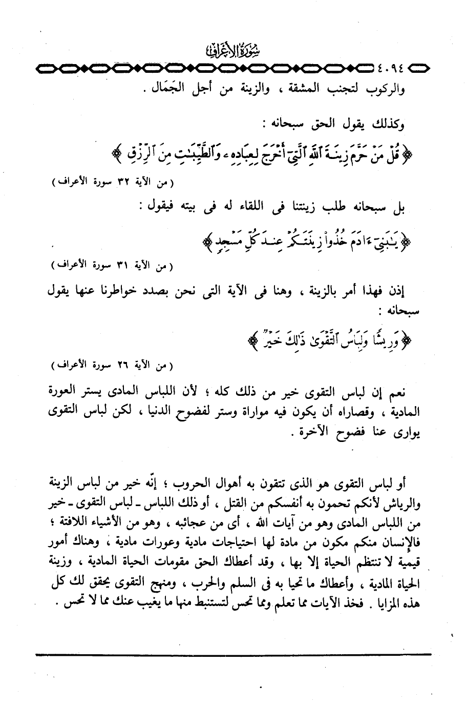 إذن فهذا أمر بالزينة، وهنا في الآية التي نحن بصدد خواطرنا عنها يقول سبحانه: {وَرِيشاً وَلِبَاسُ التقوى ذلك خَيْرٌ.