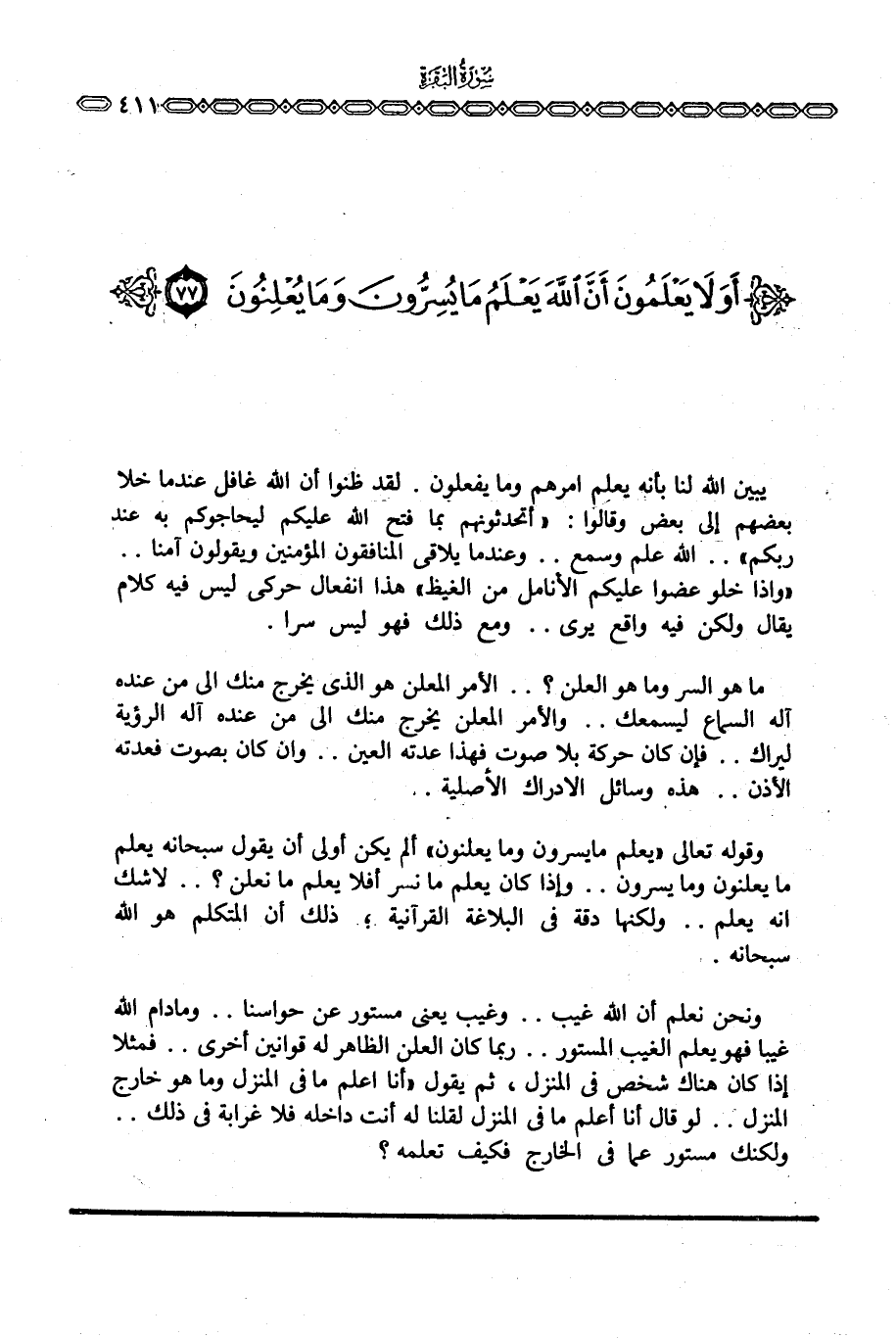 وقوله تعالى {يَعْلَمُ مَا يُسِرُّونَ وَمَا يُعْلِنُونَ} ألم يكن أولى أن يقول سبحانه يعلم ما يعلنون وما يسرون. . وإذا كان يعلم ما نسر أفلا يعلم ما نعلن؟ . . لاشك أنه يعلم. . ولكنها دقة في البلاغة القرآنية؛ ذلك أن المتكلم هو الله سبحانه.