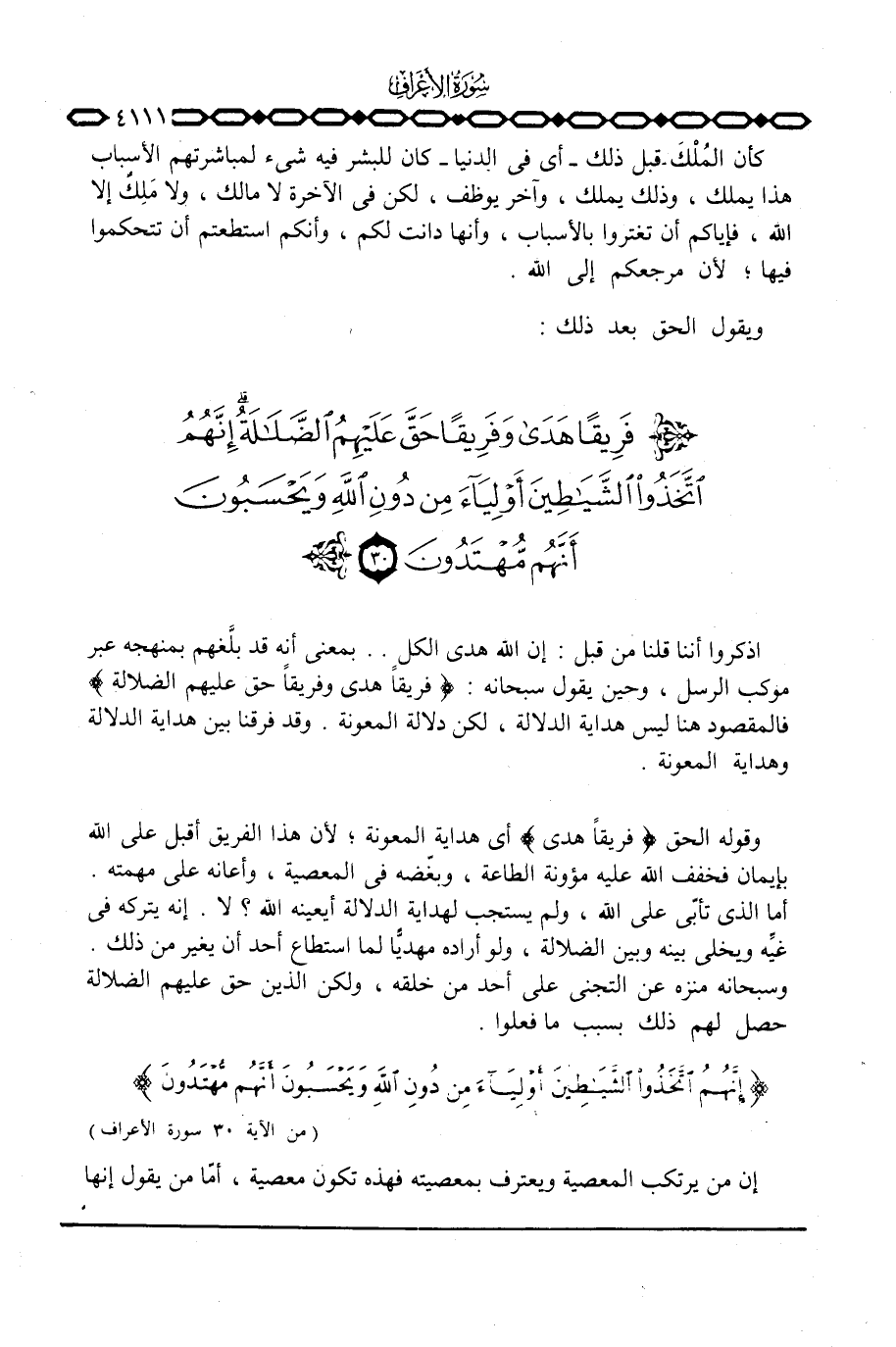 اذكروا أننا قلنا من قبل: إن الله هدى الكل. . بمعنى أنه قد بلَّغهم بمنهجه عبر موكب الرسل، وحين يقول سبحانه: {فَرِيقاً هدى وَفَرِيقاً حَقَّ عَلَيْهِمُ الضلالة} فالمقصود هنا ليس هداية الدلالة، لكن دلالة المعونة. وقد فرقنا بين هداية الدلالة وهداية المعونة.