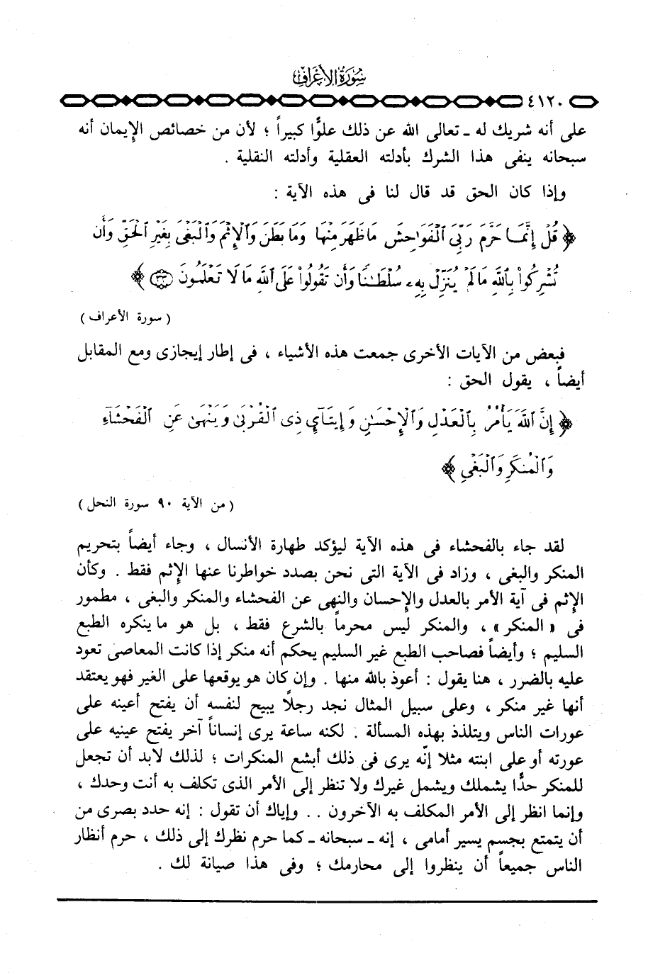 وإذا كان الحق قد قال لنا في هذه الآية: {قُلْ إِنَّمَا حَرَّمَ رَبِّيَ الفواحش مَا ظَهَرَ مِنْهَا وَمَا بَطَنَ والإثم والبغي بِغَيْرِ الحق وَأَن تُشْرِكُواْ بالله مَا لَمْ يُنَزِّلْ بِهِ سُلْطَاناً وَأَن تَقُولُواْ عَلَى الله مَا لاَ تَعْلَمُونَ} [الأعراف: 33]