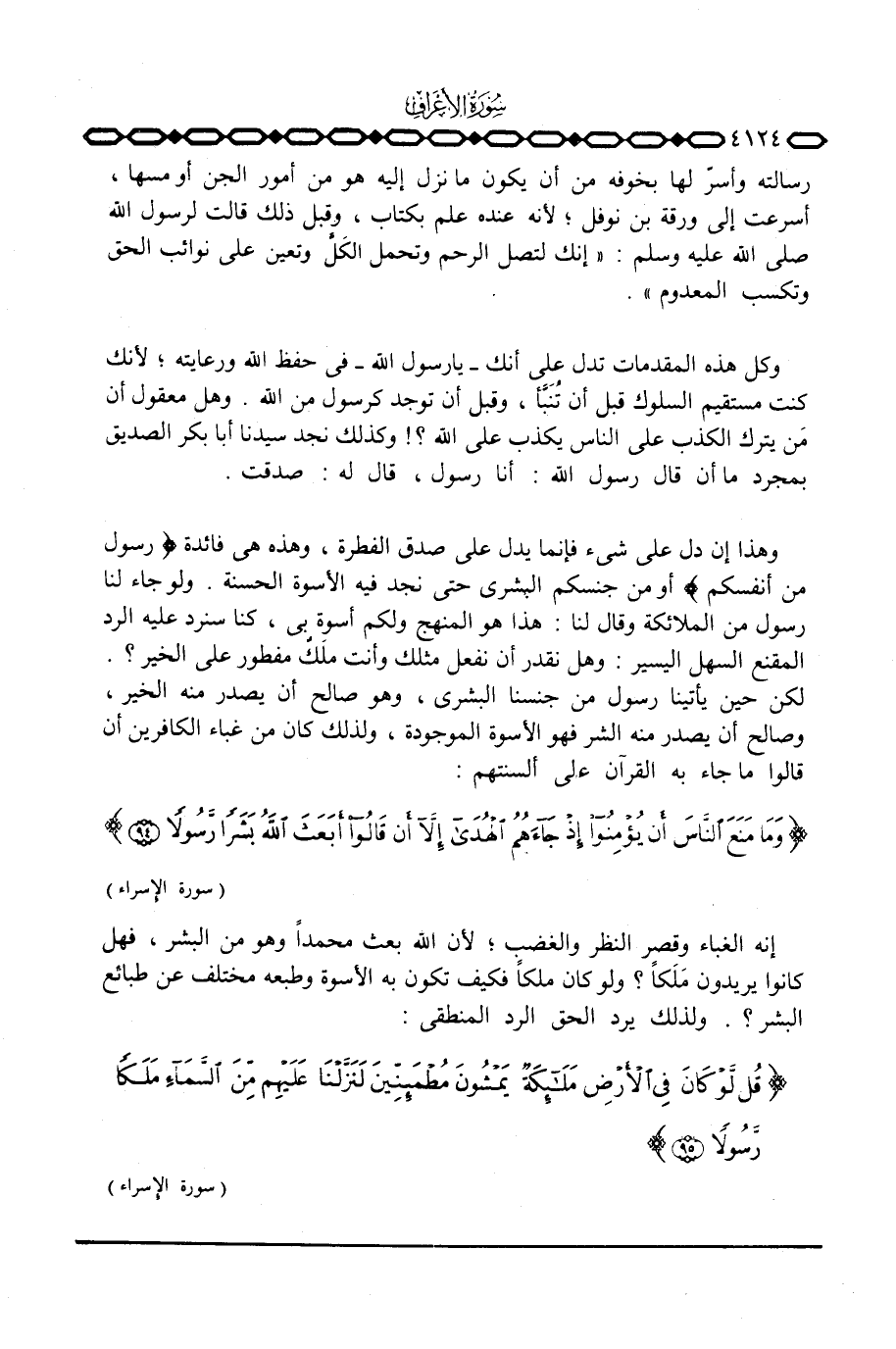 وكل هذه المقدمات تدل على أنك - يا رسول الله - في حفظ الله ورعايته؛ لأنك كنت مستقيم السلوك قبل أن تُنَّبَّأ، وقبل أن توجد كرسول من الله. وهل معقول أن مَن يترك الكذب على الناس يكذب على الله؟! وكذلك نجد سيدنا أبا بكر الصديق بمجرد ما أن قال رسول الله: أنا رسول، قال له: صدقت.