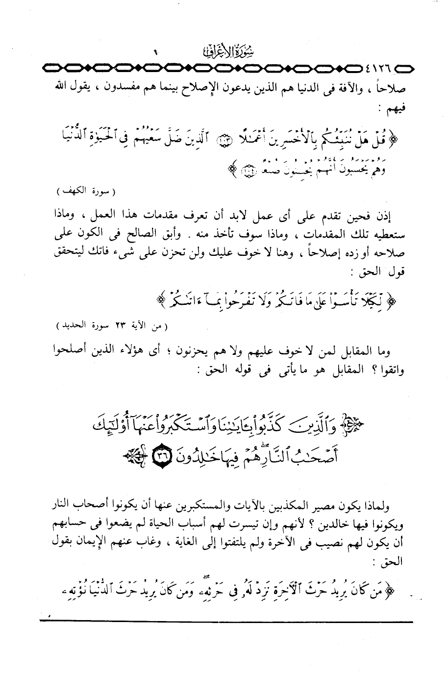 صلاحاً، والآفة في الدنيا هم الذين يدعون الإِصلاح بينما هم مفسدون، يقول الله فيهم: {قُلْ هَلْ نُنَبِّئُكُم بالأخسرين أَعْمَالاً الذين ضَلَّ سَعْيُهُمْ فِي الحياة الدنيا وَهُمْ يَحْسَبُونَ أَنَّهُمْ يُحْسِنُونَ صُنْعاً} [الكهف: 103 - 104]