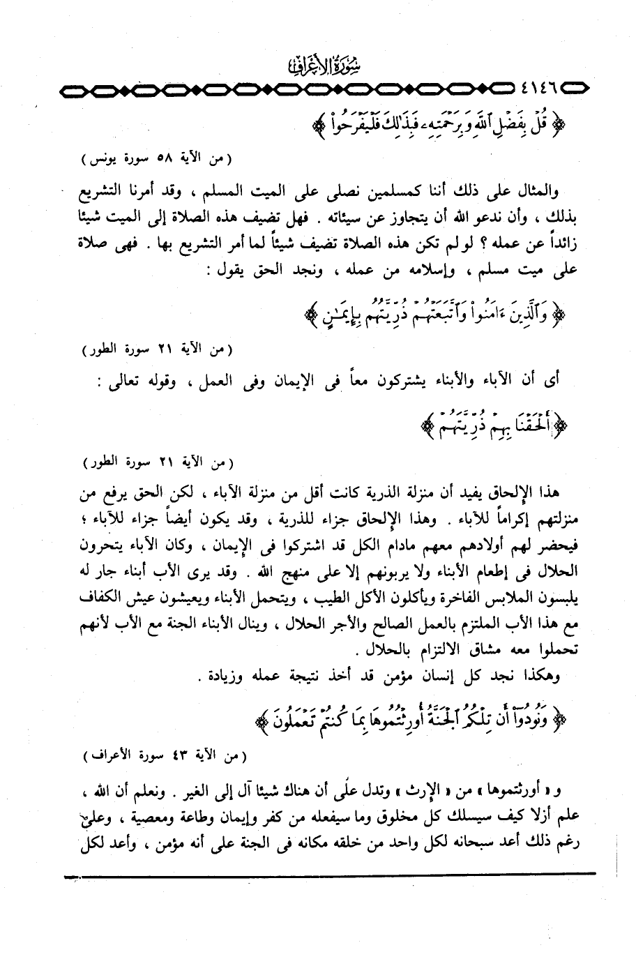 أي أن الآباء والأبناء يشتركون معاً في الإيمان وفي العمل، قوله تعالى: {أَلْحَقْنَا بِهِمْ ذُرِّيَّتَهُمْ ... } [الطور: 21]