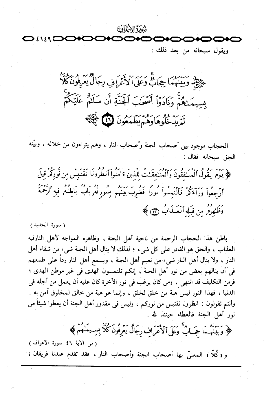 ويقول سبحانه من بعد ذلك: {وَبَيْنَهُمَا حِجَابٌ وَعَلَى الأعراف ... }