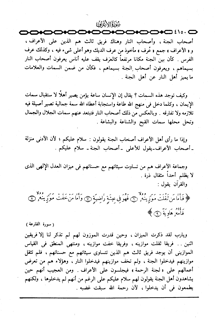ويا رب لقد ذكرت الميزان، وحين قدرت الموزون لهم لم تذكر لنا إلا فريقين اثنين. . فريق ثقلت موازينه، وفريقاً خفت موازينه، ومنتهى المنطق في القياس الموازيني أن يوجد فريق ثالث هم الذين تتساوى سيئاتهم مع حسناتهم، فلم تثقل موازينهم فيدخلوا الجنة، ولم تجف موازينهم فيدخلوا النار، وهؤلاء هم من تعرض أعمالهم على «لجنة الرحمة» فيجلسون على الأعراف. ومن العجيب أنهم حين يشاهدون أهل الجنة يقولون لهم سلام عليكم على الرغم من أنهم لم يدخلوا، لكنهم يطمعون في أن يدخلوا، لأن رحمة الله سبقت غضبه.