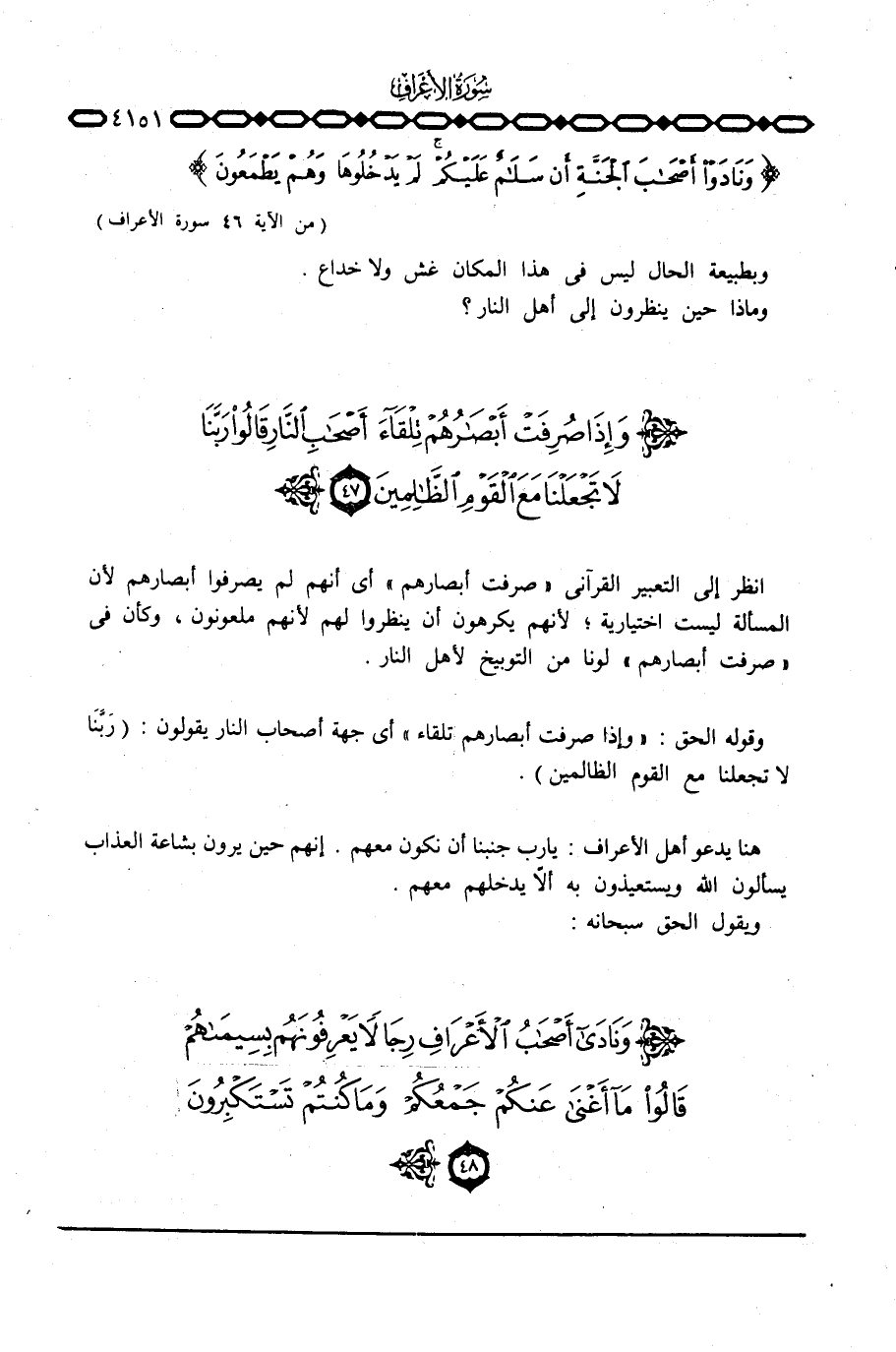 هنا يدعو أهل الأعراف: يا رب جنبنا أن نكون معهم. إنهم حين يرون بشاعة العذاب يسألون الله ويستعيذون به ألا يدخلهم معهم.
