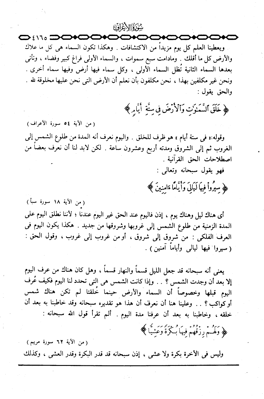 وقوله: {فِي سِتَّةِ أَيَّامٍ} هو ظرف للخلق. واليوم نعرف أنه المدة من طلوع الشمس إلى الغروب ثم إلى الشروق ومدته أربع وعشرون ساعة. لكن لابد لنا أن نعرف بعضاً من اصطلاحات الحق القرآنية.