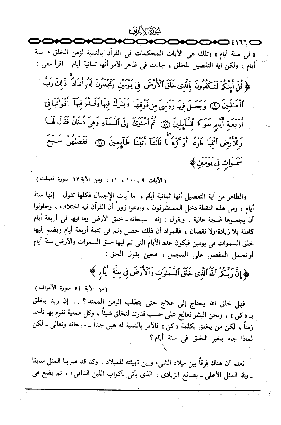 العشي، وكذلك {فِي سِتَّةِ أَيَّامٍ} وتلك هي الآيات المحكمات في القرآن بالنسبة لزمن الخلق؛ ستة أيام، ولكن آية التفصيل للخلق، جاءت في ظاهر الأمر أنها ثمانية أيام.