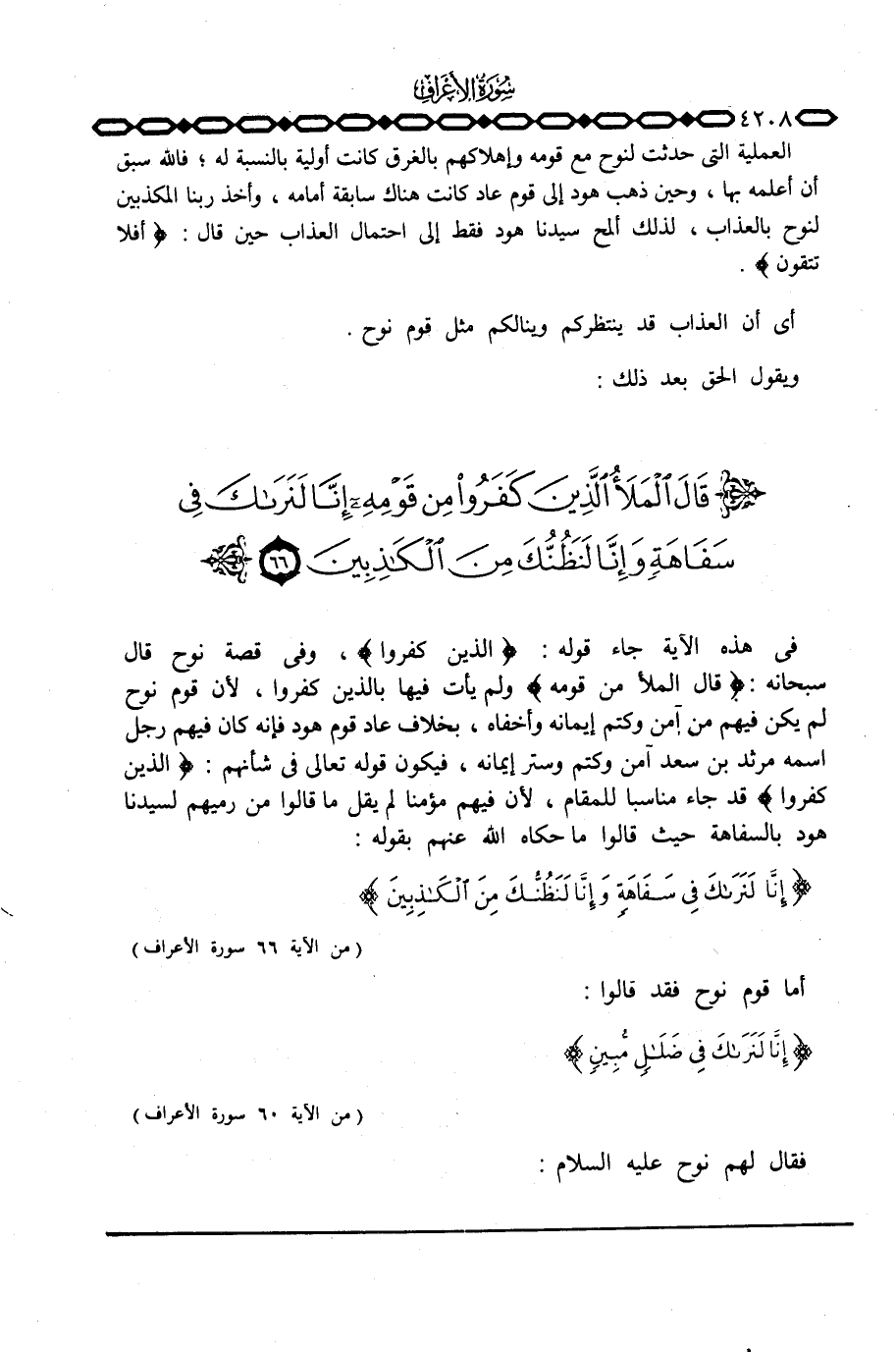 العملية التي حدثت لنوح مع قومه وإهلاكهم بالغرق كانت أولية بالنسبة له؛ فالله سبق أن أعلمه بها، وحين ذهب هود إلى قوم عاد كانت هناك سابقة أمامه، وأخذ ربنا المكذبين لنوح بالعذاب، لذلك ألمح سيدنا هود فقط إلى احتمال العذاب حين قال: {أَفَلاَ تَتَّقُونَ} .