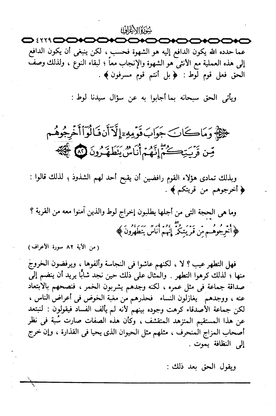 عما حدده الله يكون الدافع إليه هو الشهوة فحسب لكي ينبغي أن يكون الدافع إلى هذه العملية مع الأنثى هو الشهوة والإنجاب معا؛ لبقاء النوع، ولذلك وصف الحق فعل قوم لوط: { ... بَلْ أَنْتُمْ قَوْمٌ مُّسْرِفُونَ} . ويأتي الحق سبحانه بما أجابوا به عن سؤال سيدنا لوط: {وَمَا كَانَ جَوَابَ قَوْمِهِ ... }
