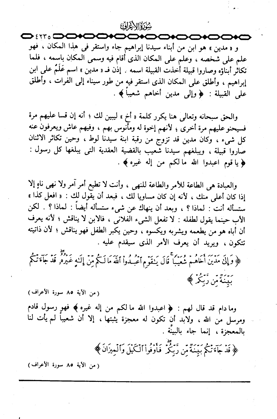 الحق سبحانه وتعالى هنا يكرر «أخ» ليبين لك؛ أنه إن قسا عليهم مرة فسيحنو عليهم مرة أخرى؛ لأنهم إخوة له ومأنوس بهم، وفيهم عاش ويعرفون عنه كل شيء، وكان مدين قد تزوج من رقبة ابنة سيدنا لوط، وحين تكاثر الاثنان صاروا قبيلة، ويبلغهم سيدنا شعيب بالقضية العقدية التي يبلغها كل رسول: {يَاقَوْمِ اعبدوا الله مَا لَكُمْ مِّنْ إله غَيْرُهُ} .