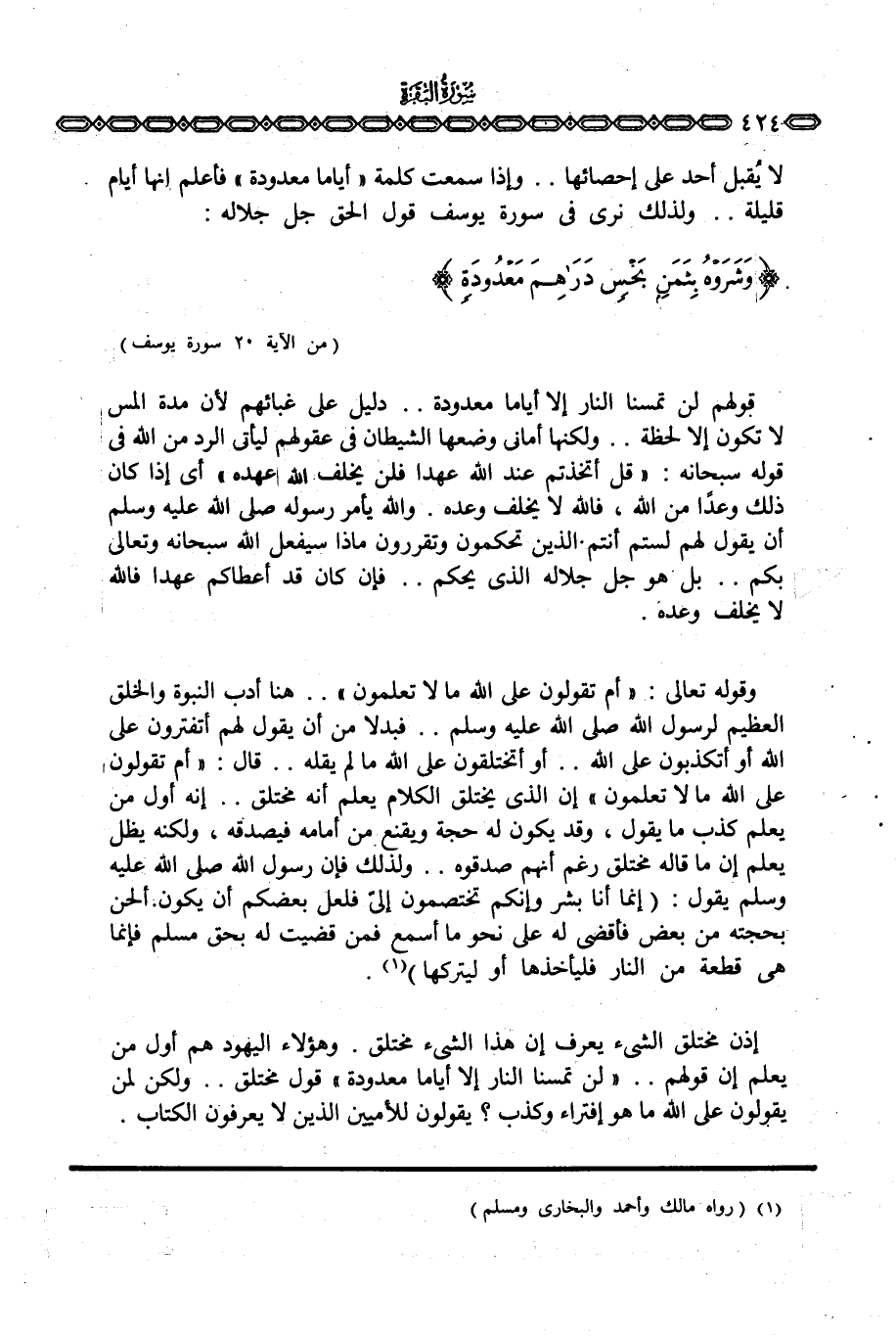 لا يقبل لا يُقبل أحد على إحصائها. . وإذا سمعت كلمة «أياما معدودة» فأعلم أنها أيام قليلة. . ولذلك نرى في سورة يوسف قول الحق جل جلاله: {وَشَرَوْهُ بِثَمَنٍ بَخْسٍ دَرَاهِمَ مَعْدُودَةٍ} [يوسف: 20]