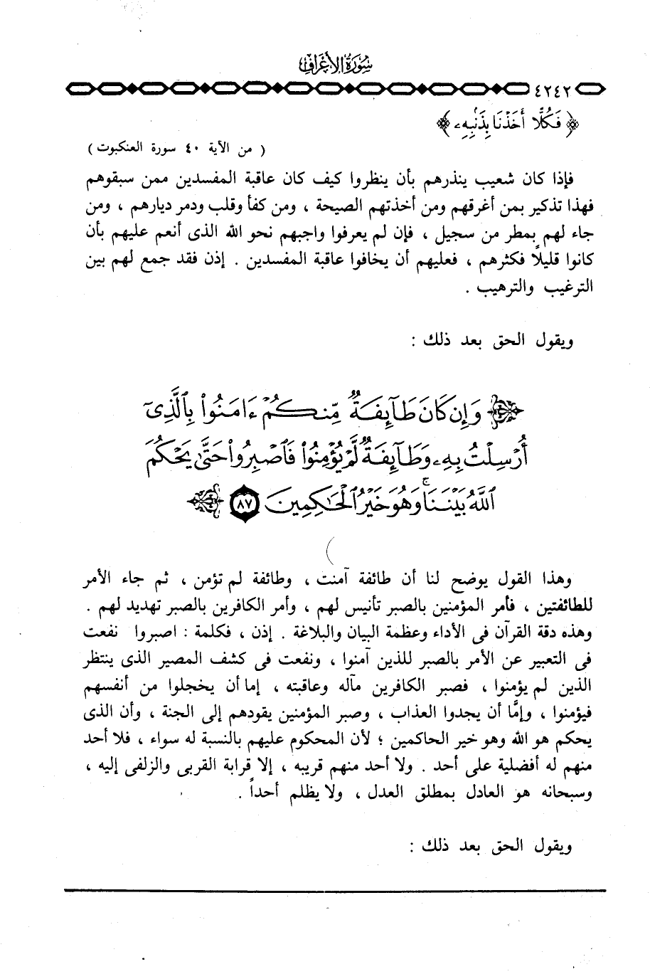 وهذا القول يوضح لنا أن طائفة آمنت، وطائفة لم تؤمن، ثم جاء الأمر للطائفتين، فأمر المؤمنين بالصبر تأنيس لهم، وأمر الكافرين بالصبر تهديد لهم.
