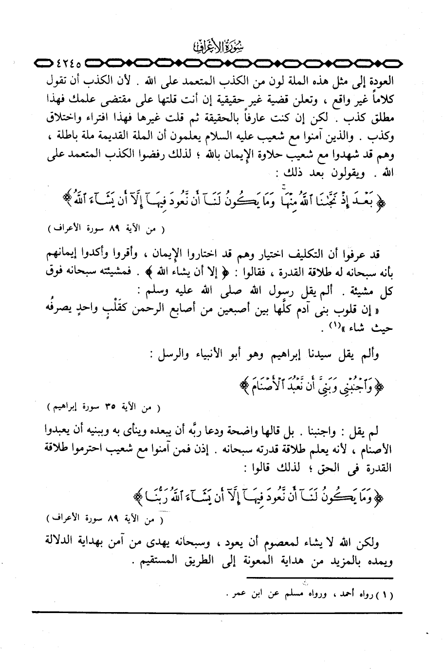 لم يقل: واجنبنا. بل قالها واضحة ودعا ربًّه أن يبعده وينأى به وببنيه أن يعبدوا الأصنام، لأنه يعلم طلاقة قدرته سبحانه. إذن فمن آمنوا مع شعيب احترموا طلاقة القدرة في الحق؛ لذلك قالوا: {وَمَا يَكُونُ لَنَآ أَن نَّعُودَ فِيهَآ إِلاَّ أَن يَشَآءَ الله رَبُّنَا ... } [الأعراف: 89]