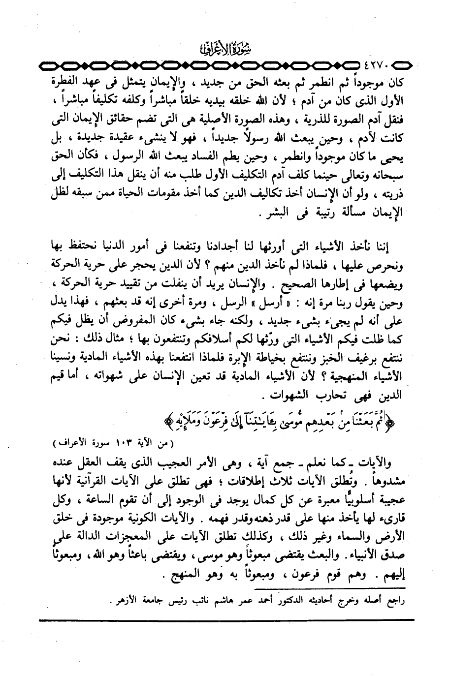 إننا نأخذ الأشياء التي أورثها لنا أجدادنا وتنفعنا في أمور الدنيا نحتفظ بها ونحرص عليها، فلماذا لم نأخذ الدين منهم؟ لأن الدين يحجر على حرية الحركة ويضعها في إطارها الصحيح. والإِنسان يريد أن ينفلت من تقييد حرية الحركة، وحين يقول ربنا مرة إنه: «أرسل» الرسل، ومرة أخرى إنه قد بعثهم، فهذا يدل على أنه لم يجيء بشيء جديد، ولكنه جاء بشيء كان المفروض أن يظل فيكم كما ظلت فيكم الأشياء التي ورّثها لكم أسلافكم وتنتفعون بها؛ مثال ذلك: نحن ننتفع برغيف الخبز وننتفع بخياطة الإِبرة فلماذا انتفعنا بهذه الأشياء المادية ونسينا الأشياء المنهجية؟ لأن الأشياء المادية قد تعين الإِنسان على شهواته، أما قيم الدين فهي تحارب الشهوات. {ثُمَّ بَعَثْنَا مِن بَعْدِهِم موسى بِآيَاتِنَآ إلى فِرْعَوْنَ وَمَلَئِهِ ... } [الأعراف: 103]