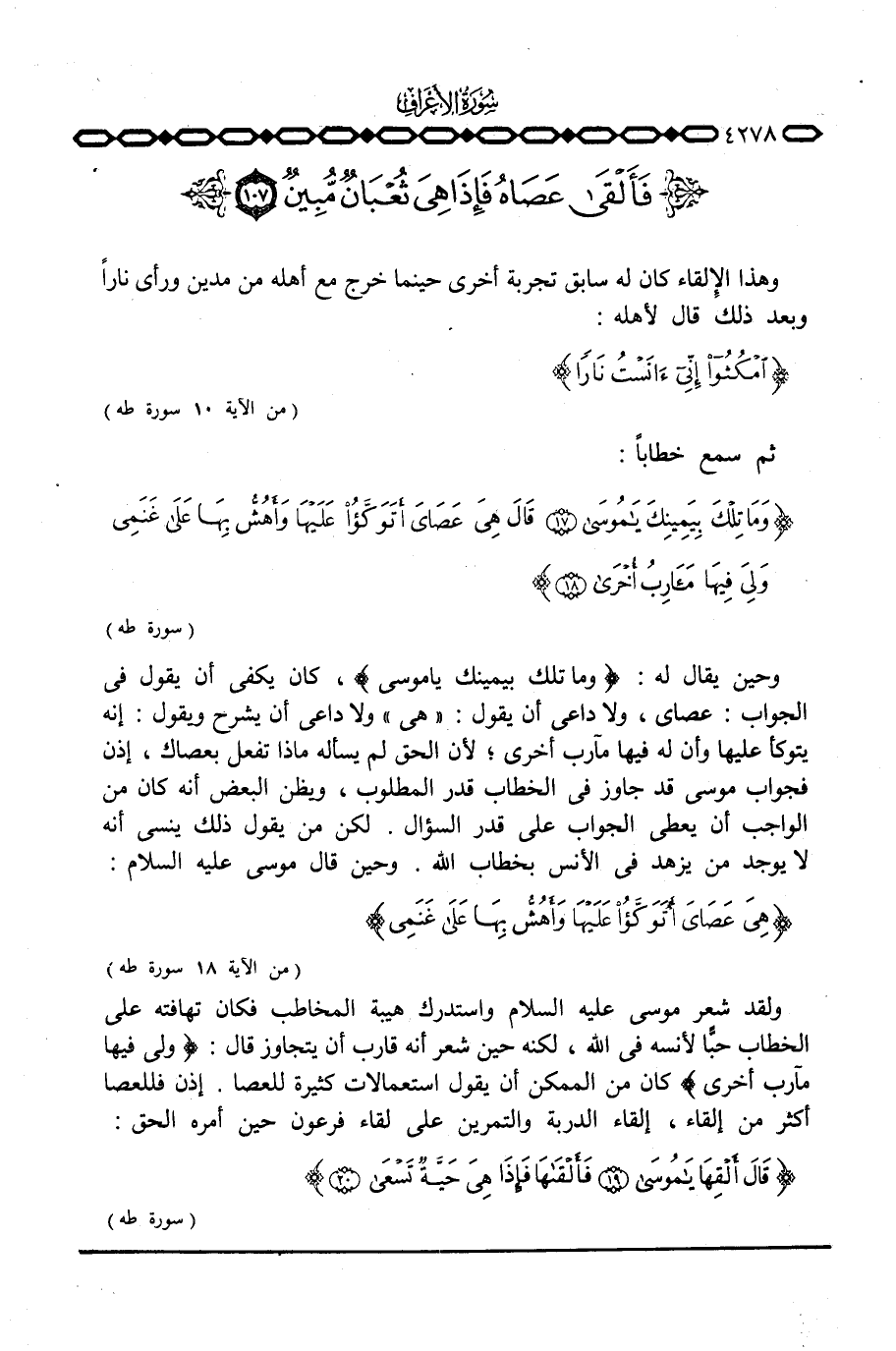 وحين يقال له: {وَمَا تِلْكَ بِيَمِينِكَ ياموسى} ، كان يكفي أن يقول في الجواب: عصاي، ولا داعي أن يقول: «هي» ولا داعي أن يشرح ويقول: إنه يتوكأ عليها وأن له فيها مآرب أخرى؛ لأن الحق لم يسأله ماذا تفعل بعصاك، إذن فجواب موسى قد جاوز في الخطاب قدر المطلوب، ويظن البعض أنه كان من الواجب أن يعطي الجواب على قدر السؤال. لكن من يقول ذلك ينسى أنه لا يوجد من يزهد في الأنس بخطاب الله. وحين قال موسى عليه السلام: {هِيَ عَصَايَ أَتَوَكَّأُ عَلَيْهَا وَأَهُشُّ بِهَا على غَنَمِي ... } [طه: 18]