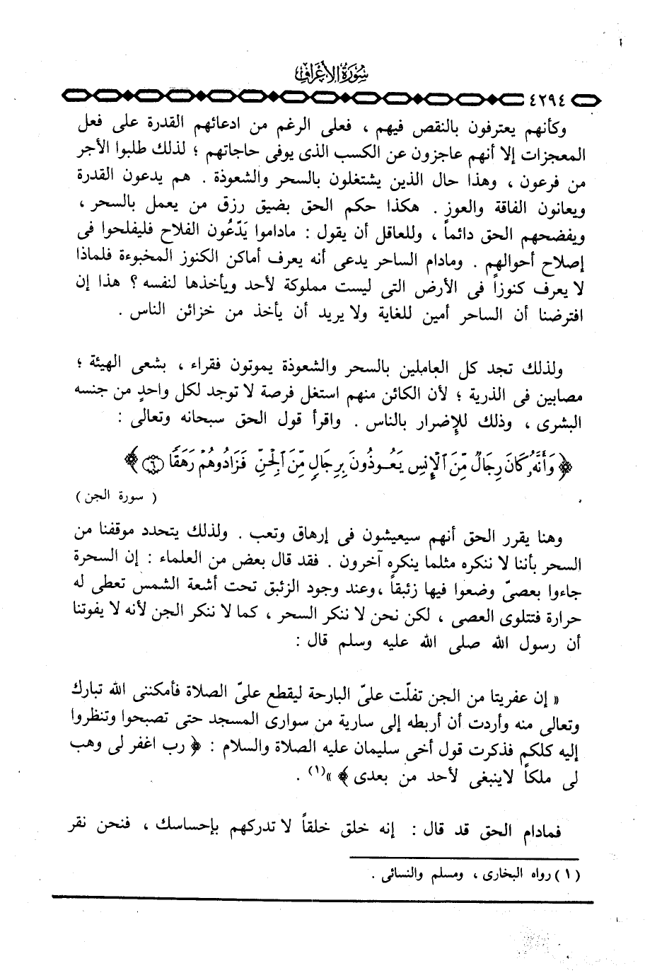 وهنا يقرر الحق أنهم سيعيشون في إرهاق وتعب. ولذلك يتحدد موقفنا من السحر بأننا لا ننكره مثلما ينكره آخرون. فقد قال بعض من العلماء: إن السحرة جاءوا بعصيّ وضعوا فيها زئبقاً، وعند وجود الزئبق تحت أشعة الشمس تعطي له حرارة فتتلوى العصى، لكن نحن لا ننكر السحر، كما لا ننكر الجن لأنه لا يفوتنا أن رسول الله صَلَّى اللَّهُ عَلَيْهِ وَسَلَّم َ قال: «إن عفريتا من الجن تفلّت عليّ البارحة ليقطع عليّ الصلاة فأمكنني الله تبارك وتعالى منه وأردت أن أربطه إلى سارية من سواري المسجد حتى تصبحوا وتنظروا إليه كلكم فذكرت قول أخي سليمان عَلَيْهِ الصَّلَاة وَالسَّلَام ُ: {رَبِّ اغفر لِي وَهَبْ لِي مُلْكاً لاَّ يَنبَغِي لأَحَدٍ مِّن بَعْدِي} » .