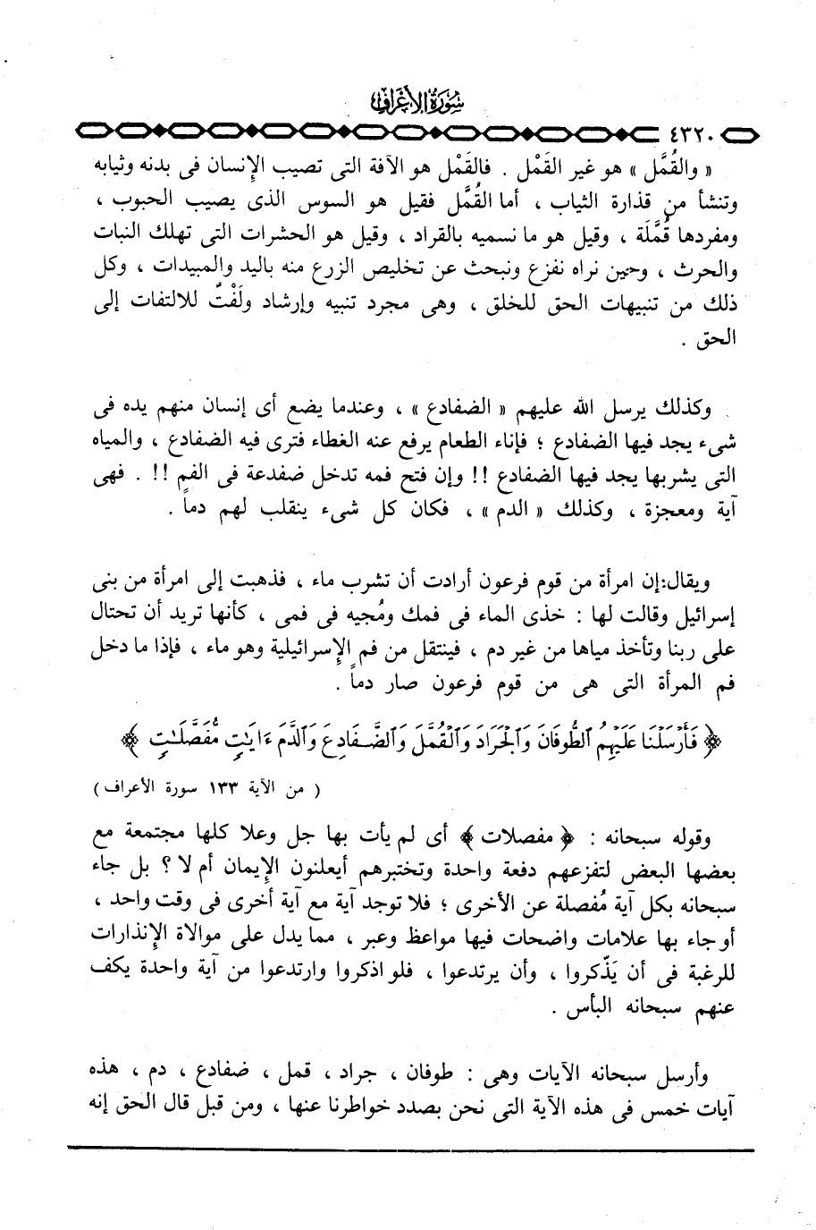{فَأَرْسَلْنَا عَلَيْهِمُ الطوفان والجراد والقمل والضفادع والدم آيَاتٍ مّفَصَّلاَتٍ ... } [الأعراف: 133]