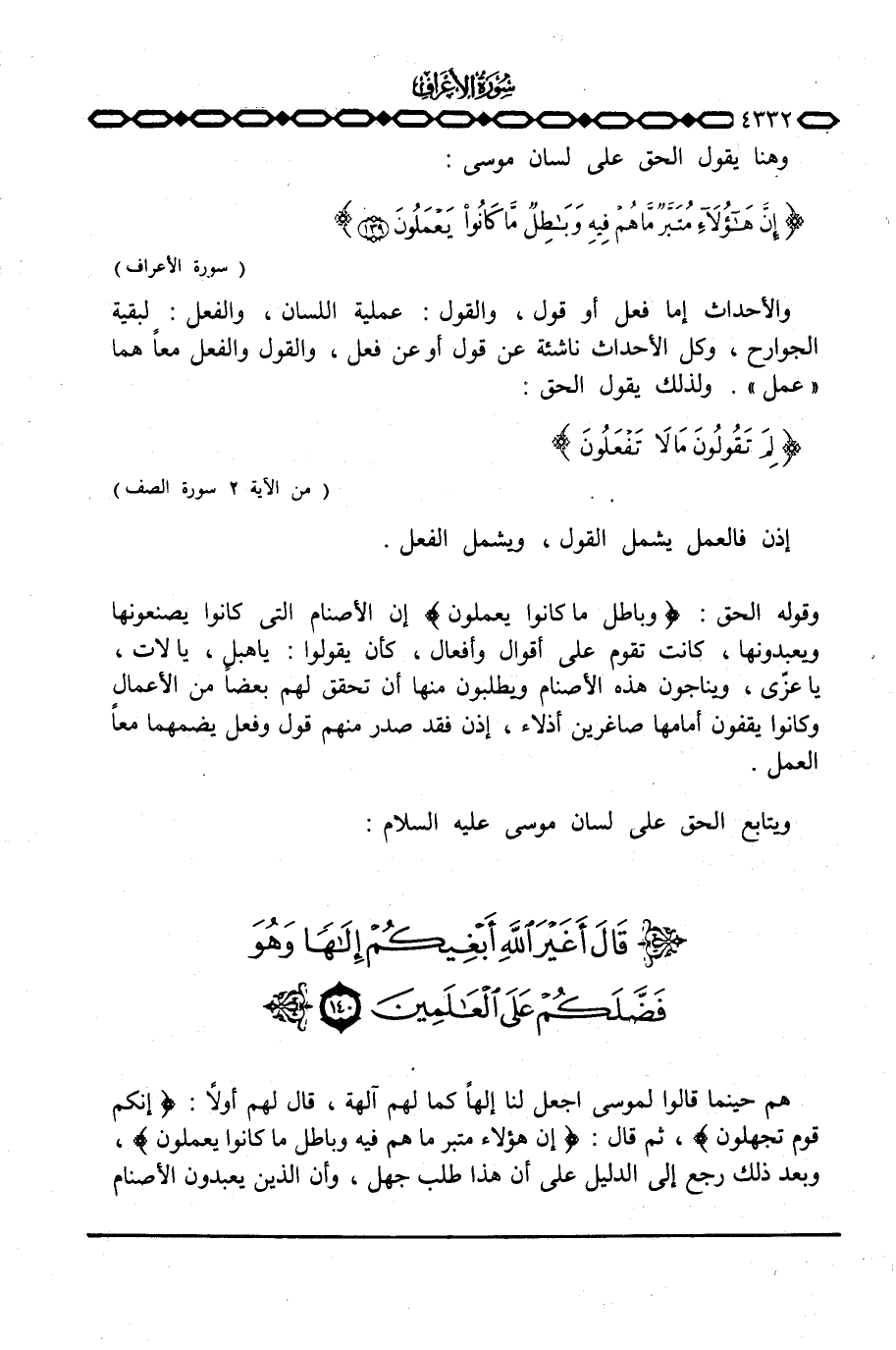 هم حينما قالوا لموسى اجعل لنا إلهاً كما لهم آلهة، قال لهم أولاً: {إِنَّكُمْ قَوْمٌ تَجْهَلُونَ} ، ثم قال: {إِنَّ هؤلاء مُتَبَّرٌ مَّا هُمْ فِيهِ وَبَاطِلٌ مَّا كَانُواْ يَعْمَلُونَ} ، وبعد ذلك رجع إلى الدليل على أن هذا طلب جهل، وأن الذين يعبدون الأصنام