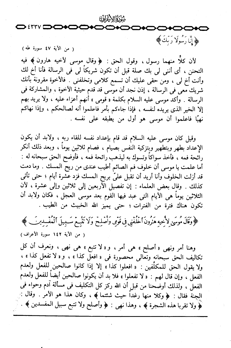 لأن كلاًّ منهما رسول، وقول الحق: {وَقَالَ موسى لأَخِيهِ هَارُونَ} فيه التحنن، أي أنني لي بك صلة قبل أن تكون شريكاً لي في الرسالة فأنا أخ لك وأنت أخ لي، ومن حقي عليك أن تسمع كلامي وتخلفني. فالأخوة مقرونة بأنك شريك معي في الرسالة إذن نجد أن موسى قد قدم حيثية الأخوة والمشاركة في الرسالة. وأكد موسى عليه السلام بكلمة «قومي» أنهم أعزاء عليه، ولا يريد بهم إلا الخير الذي يريده لنفسه، فإذا جاءكم بأمر فاعلموا أنه لصالحكم، وإذا نهاكم نهيّا فاعلموا أن موسى هو أول من يطبقه على نفسه.