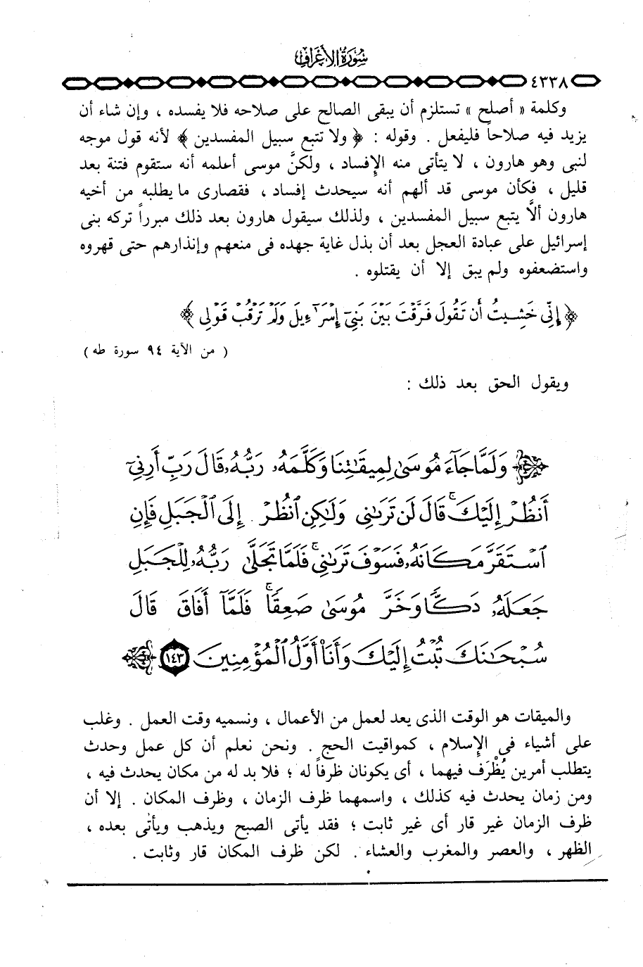 وقوله: {وَلاَ تَتَّبِعْ سَبِيلَ المفسدين} لأنه قول موجه لنبي وهو هارون، لا يتأتى منه الإِفساد، ولكنَّ موسى أعلمه أنه ستقوم فتنة بعد قليل، فكأن موسى قد ألهم أنه سيحدث إفساد، فقصارى ما يطلبه من أخيه هارون ألاَّ يتبع سبيل المفسدين، ولذلك سيقول هارون بعد ذلك مبرراً تركه بني إسرائيل على عبادة العجل بعد أن بذل غاية جهده في منعهم وإنذارهم حتى قهروه واستضعفوه ولم يبق إلا أن يقتلوه. { ... إِنِّي خَشِيتُ أَن تَقُولَ فَرَّقْتَ بَيْنَ بني إِسْرَآئِيلَ وَلَمْ تَرْقُبْ قَوْلِي} [طه: 94]