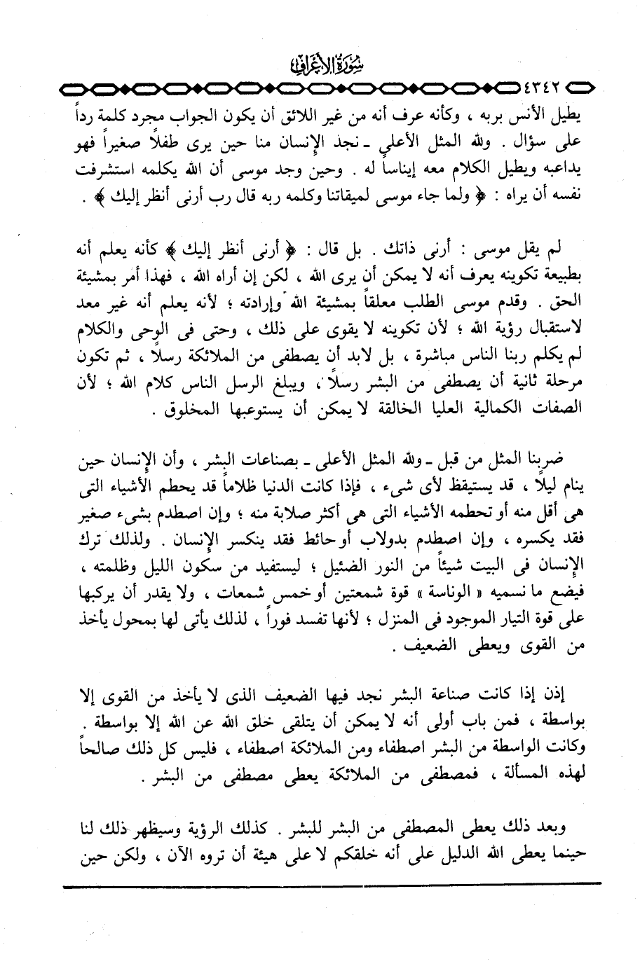 وبعد ذلك يعطي المصطفى من البشر للبشر. كذلك الرؤية وسيظهر ذلك لنا حينما يعطي الله الدليل على أنه خلقكم لا على هيئة أن تروه الآن، ولكن حين