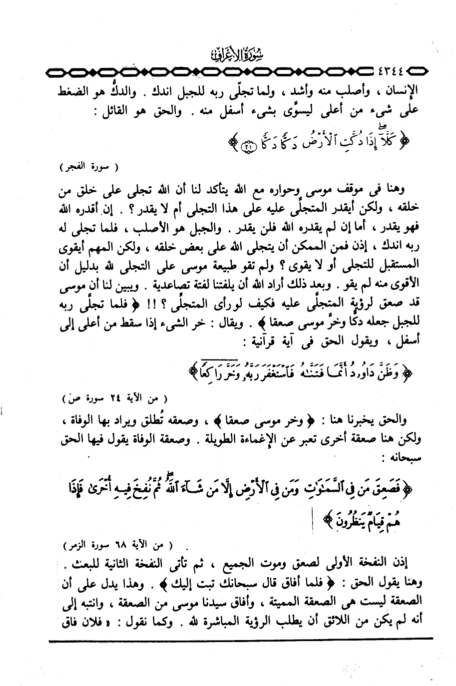الإِنسان، وأصلب منه وأشد، ولما تجلّى ربه للجبل اندك. والدكُّ هو الضغط على شيء من أعلى ليسوَّي بشيء أسفل منه. والحق هو القائل: {كَلاَّ إِذَا دُكَّتِ الأرض دَكّاً دَكّاً} [الفجر: 21]