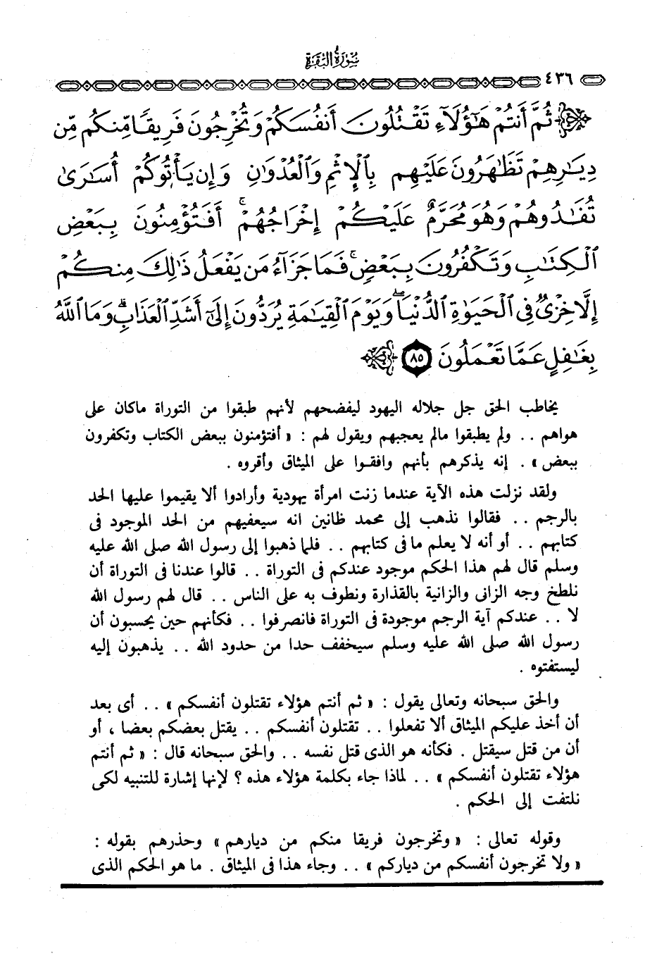 والحق سبحانه وتعالى يقول: {ثُمَّ أَنْتُمْ هؤلاء تَقْتُلُونَ أَنْفُسَكُمْ} . . أي بعد أن أخذ عليكم الميثاق ألا تفعلوا. . تقتلون أنفسكم. . يقتل بعضكم بعضا، أو أن من قتل سيقتل. فكأنه هو الذي قتل نفسه. . والحق سبحانه قال: {ثُمَّ أَنْتُمْ هؤلاء تَقْتُلُونَ أَنْفُسَكُمْ} . . لماذا جاء بكلمة هؤلاء هذه؟ لإنها إشارة للتنبيه لكي نلتف إلى الحكم.